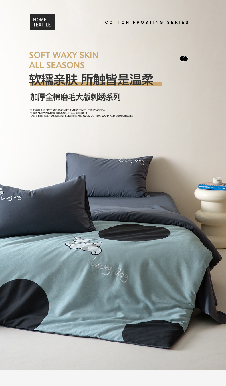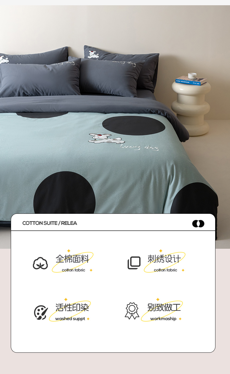 当前位置: 91家纺网 > 商品网购 > 床品套件 > 四件套 > 全棉普通四件套 > 小叮当家纺仓储工厂店 2025新款提供买家秀爆款花型不断货全棉纯棉磨毛四件套大版定位印加绣 波点派对