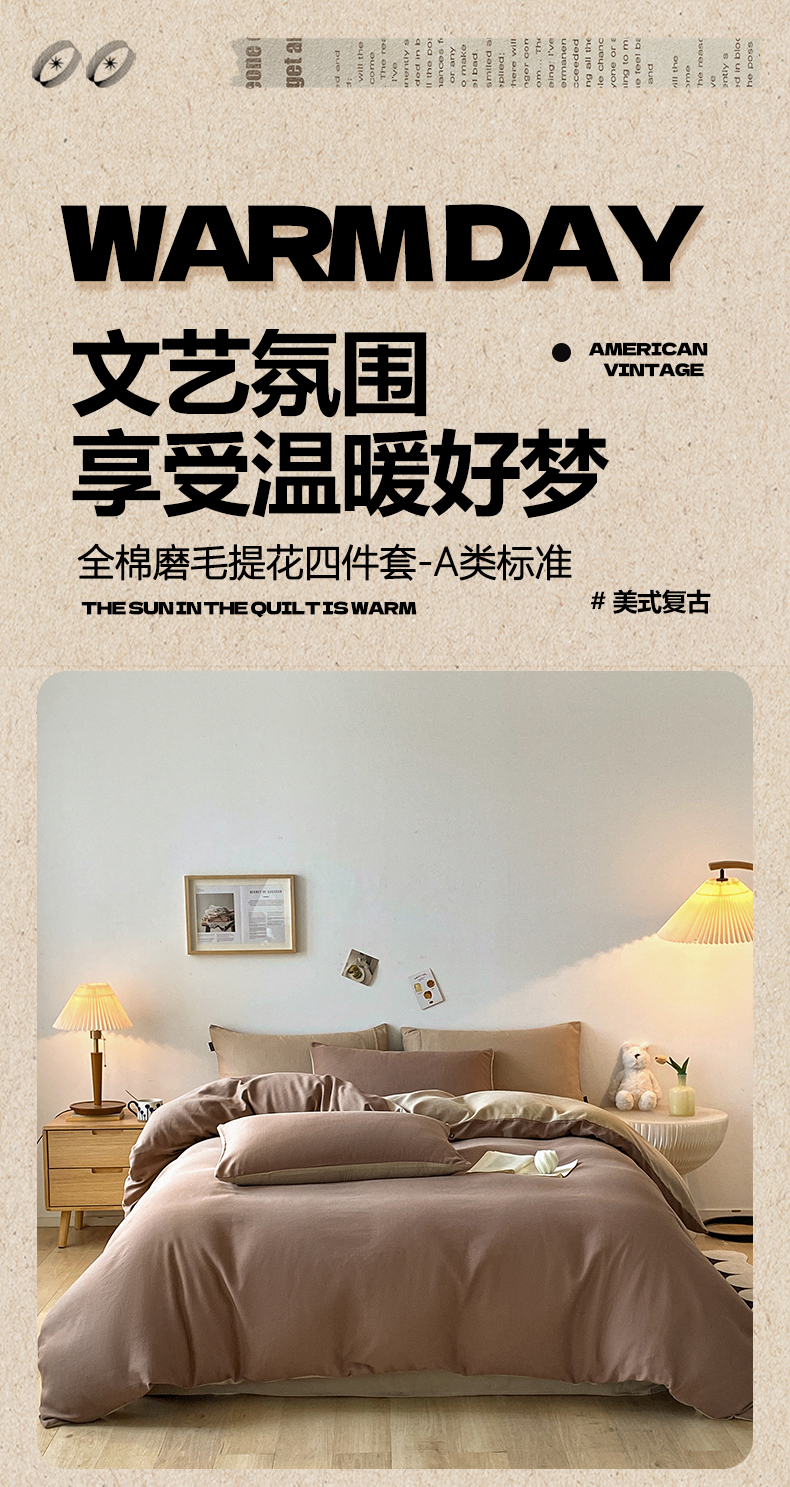 当前位置: 91家纺网 > 商品网购 > 床品套件 > 四件套 > 全棉普通四件套 > 小叮当家纺仓储工厂店 2025新款提供买家秀爆款花型不断货60s水洗提花全棉纯棉磨毛四件套 迷雾棕
