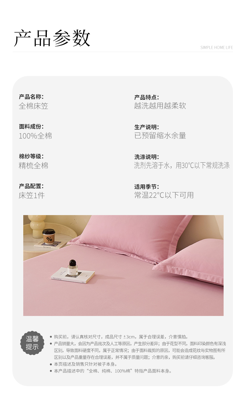 商品名称:元元家居(元元被业) 2025新款全棉纯棉磨毛纯色单床笠 芝士粉