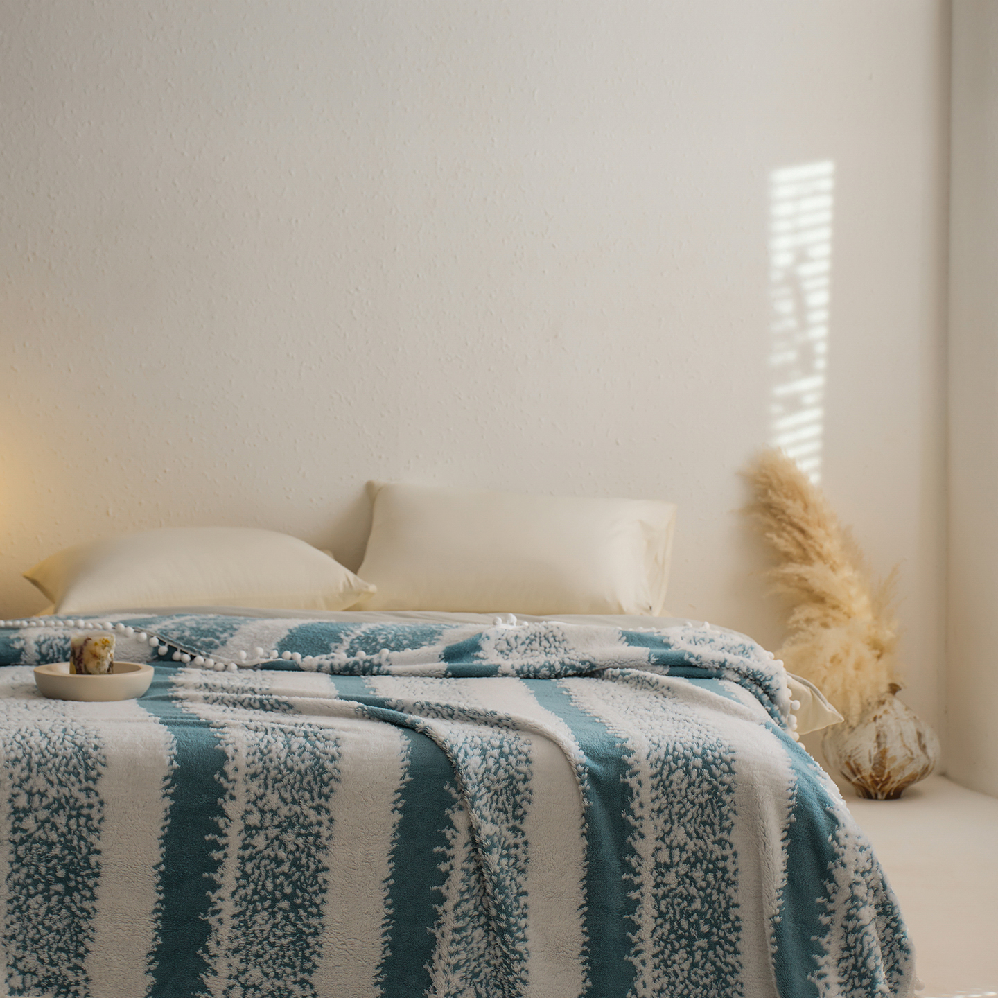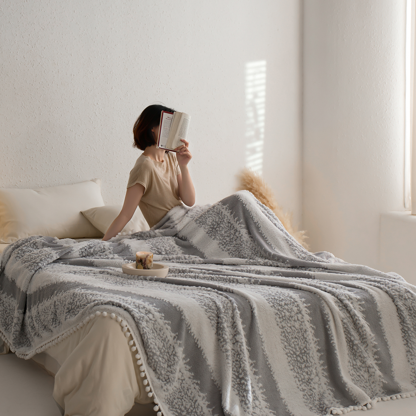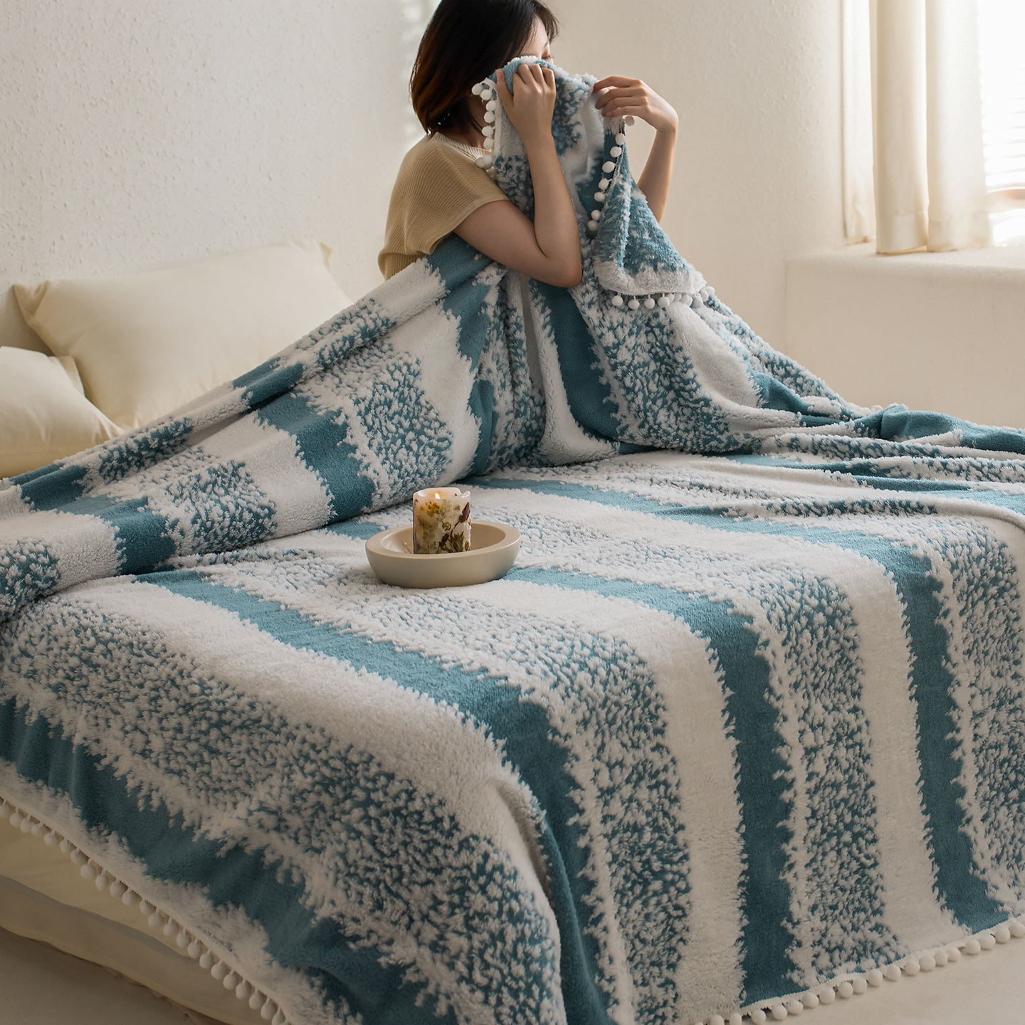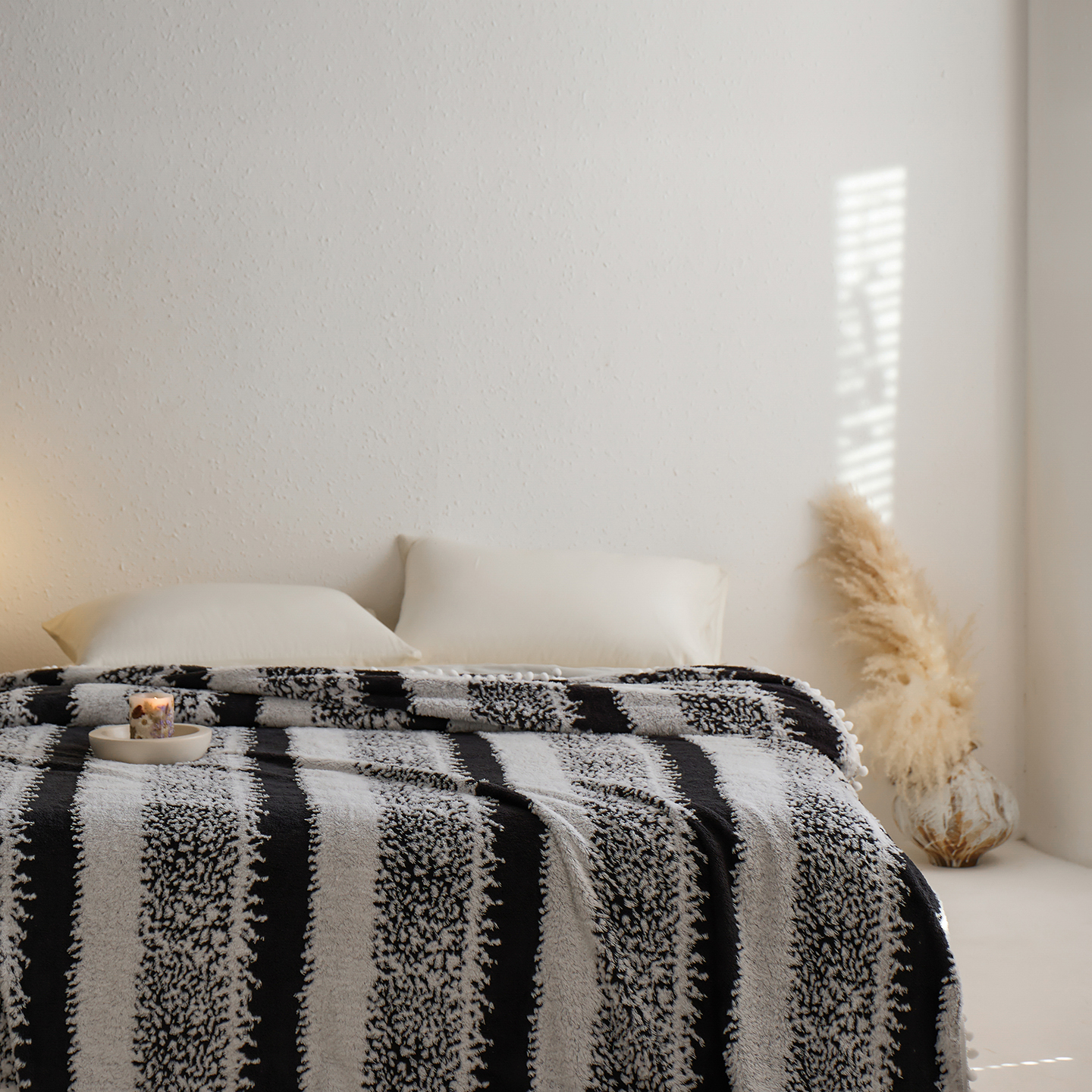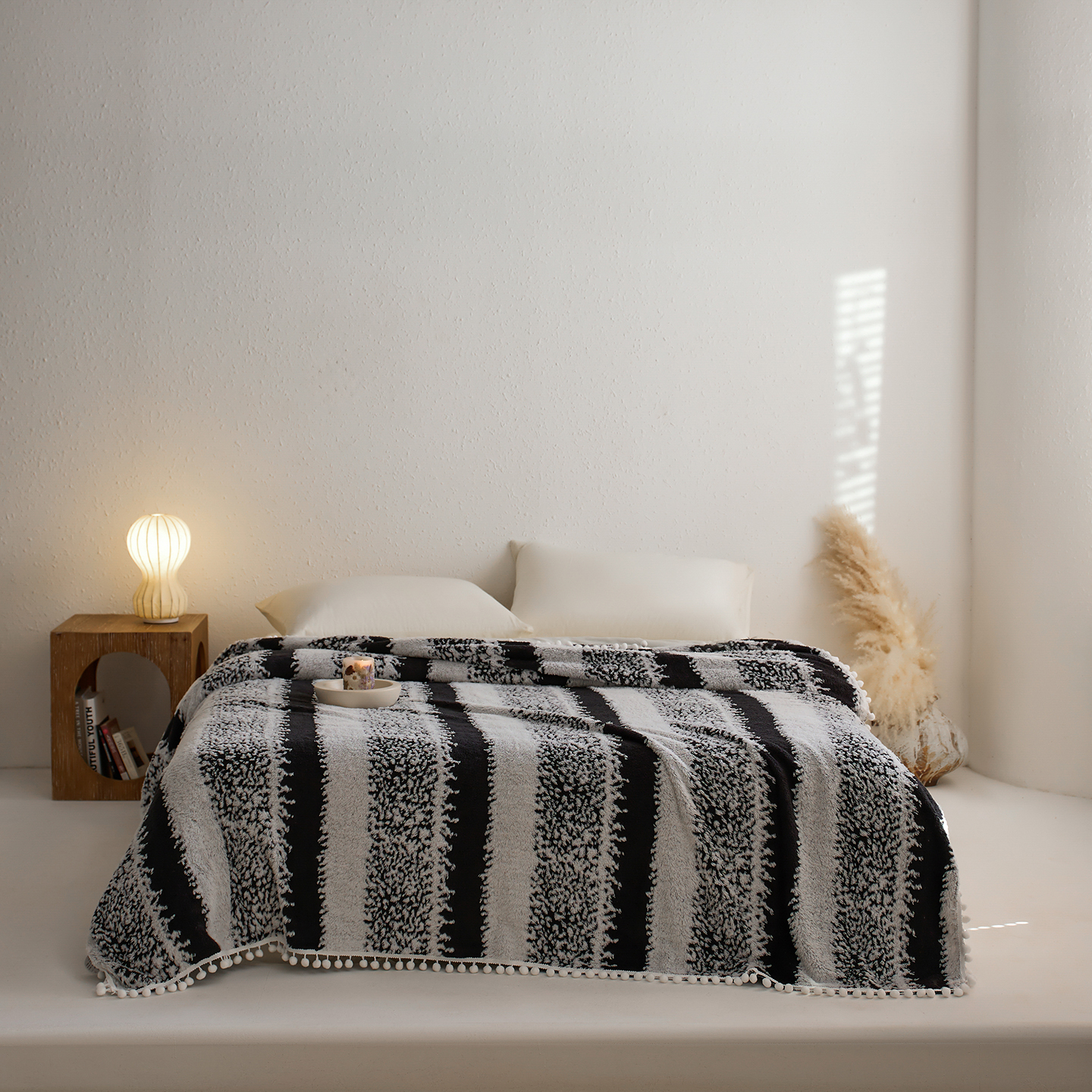 商品名称:安莱生活 2025新款阳离子羊羔绒200克毛毯--森语雪球系列 森语雪球-黑灰
