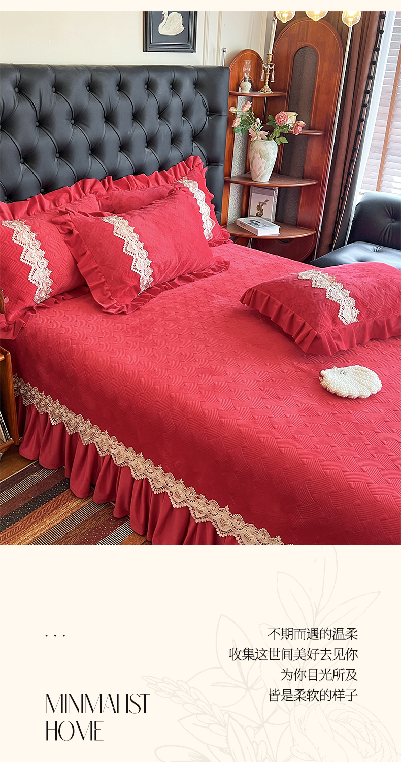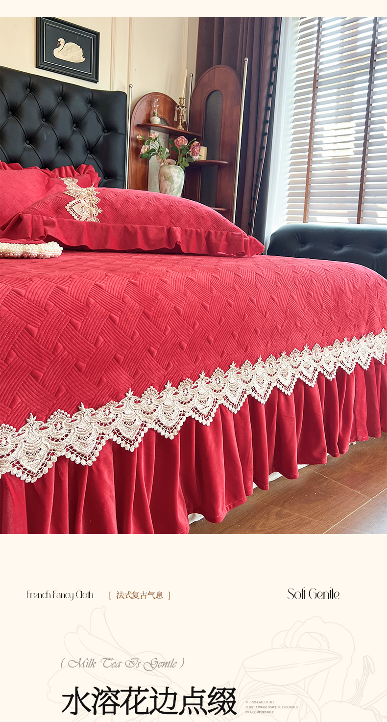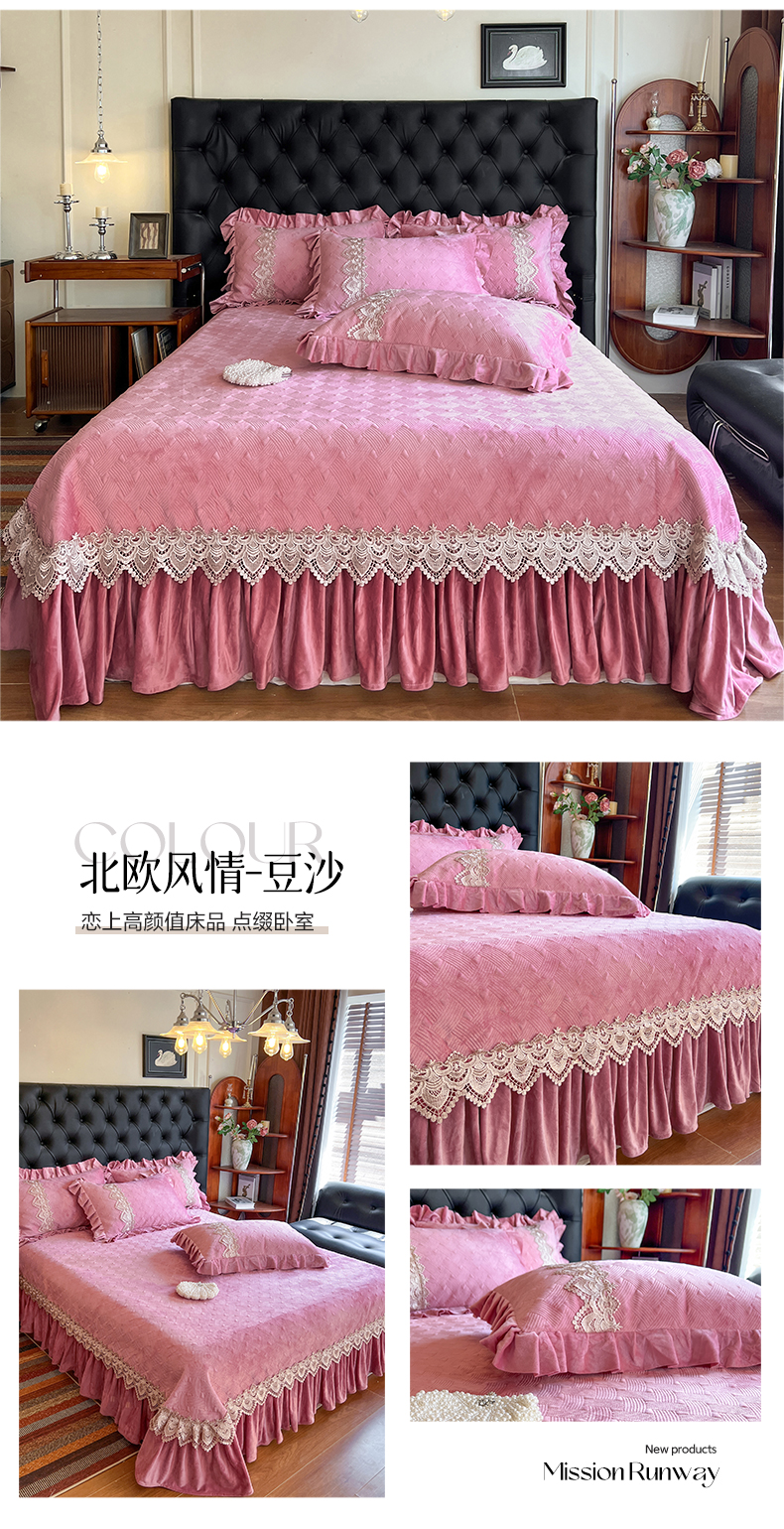 (总)瑞宝 2025新款雕花牛奶绒花边夹棉床盖四件套-莫妮卡,奶昔白,抹茶绿,奶茶咖,少女粉,雾蓝