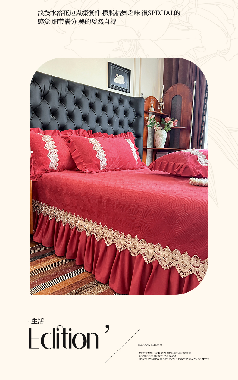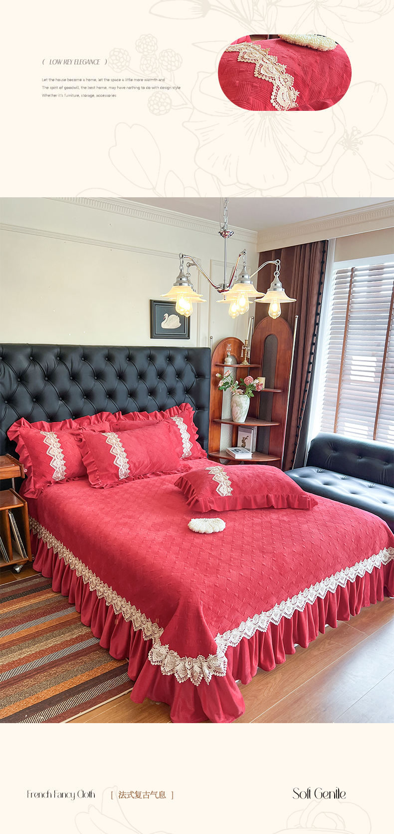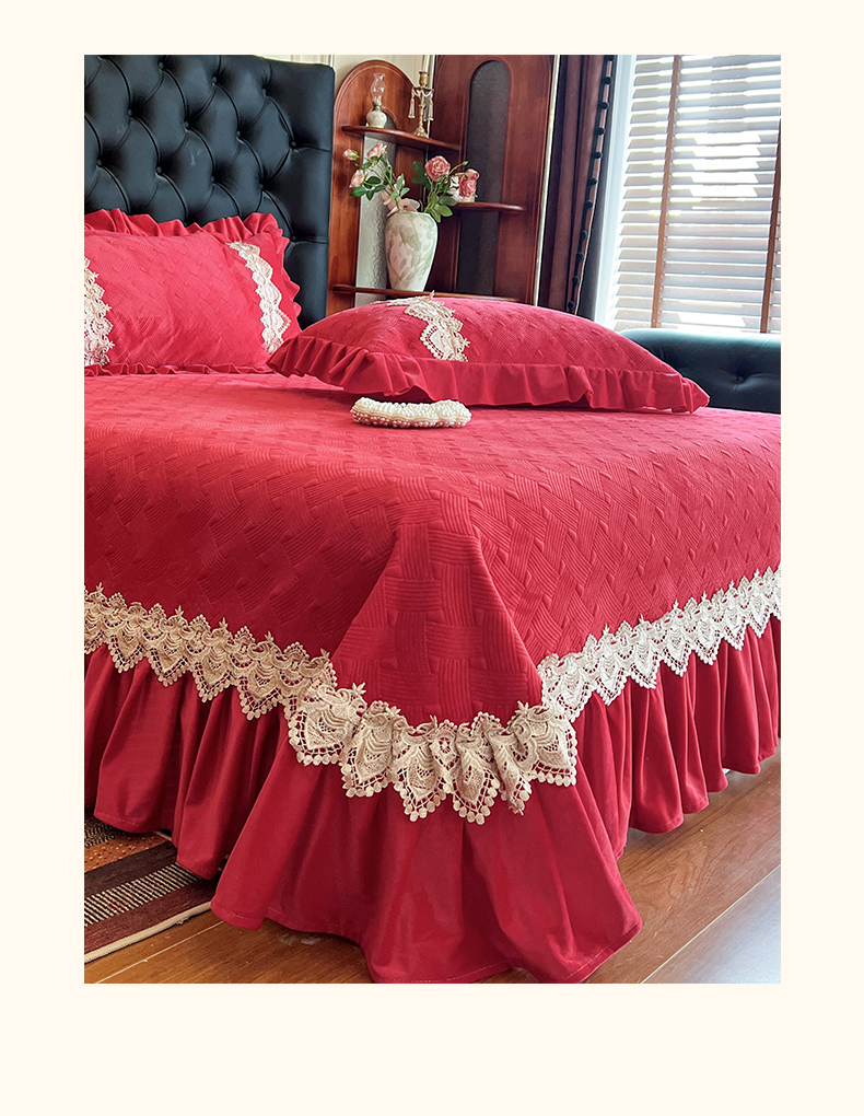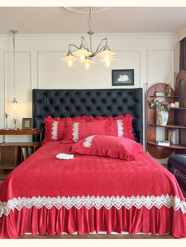 (总)瑞宝 2025新款雕花牛奶绒花边夹棉床盖四件套-莫妮卡,奶昔白,抹茶绿,奶茶咖,少女粉,雾蓝