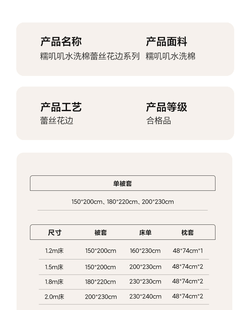 当前位置: 91家纺网 > 商品网购 > 床品套件 > 四件套 > 澜妃 2025新款糯叽叽水洗棉全棉蕾丝花边-艾意系列 艾意-爱情手礼