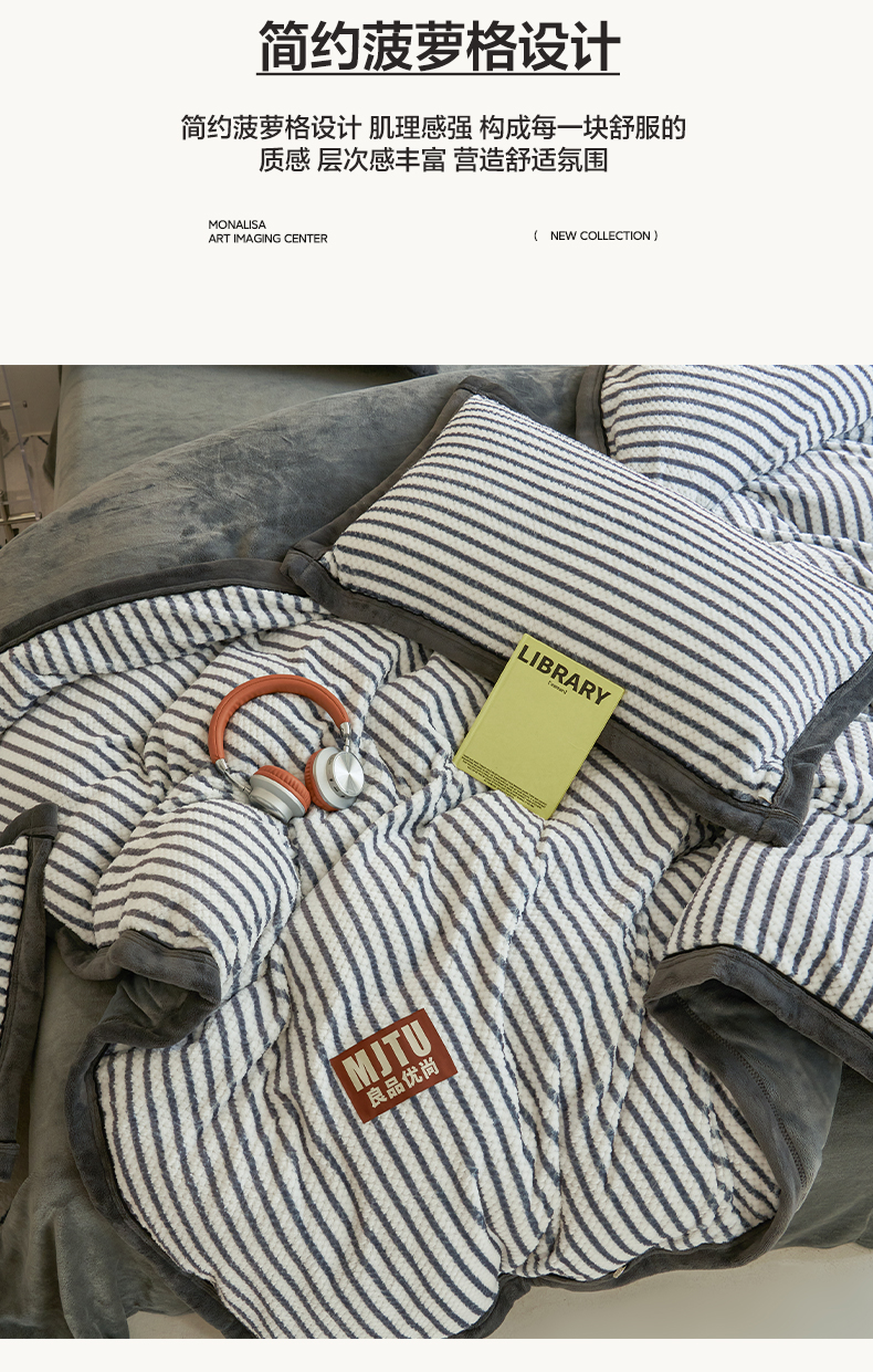 当前位置: 91家纺网 > 商品网购 > 床品套件 > 四件套 > 牛奶绒四件套 > 晨曦家纺 2025新款加厚高克重230克贝贝绒牛奶绒四件套无印风菠萝格 贝贝绒-星空灰