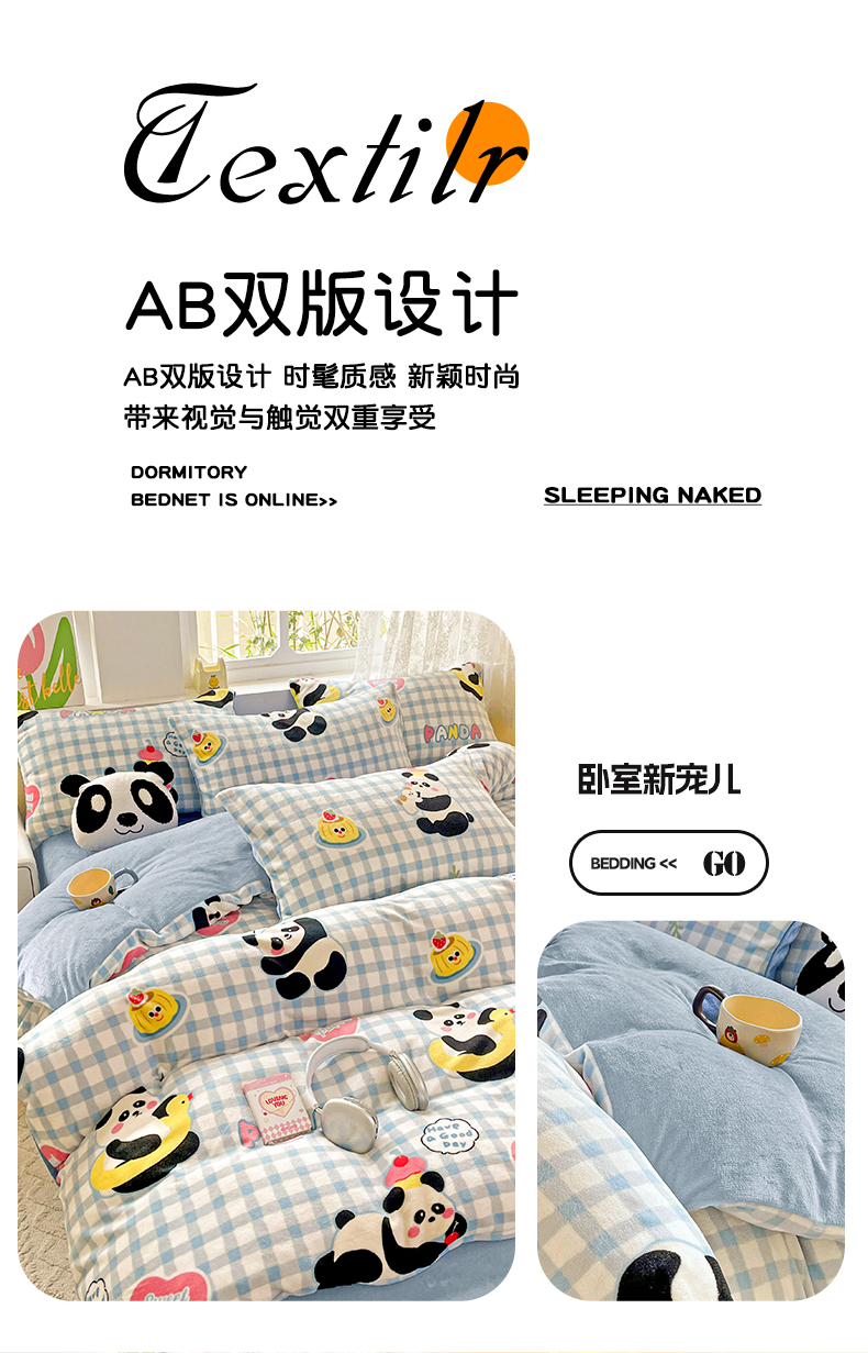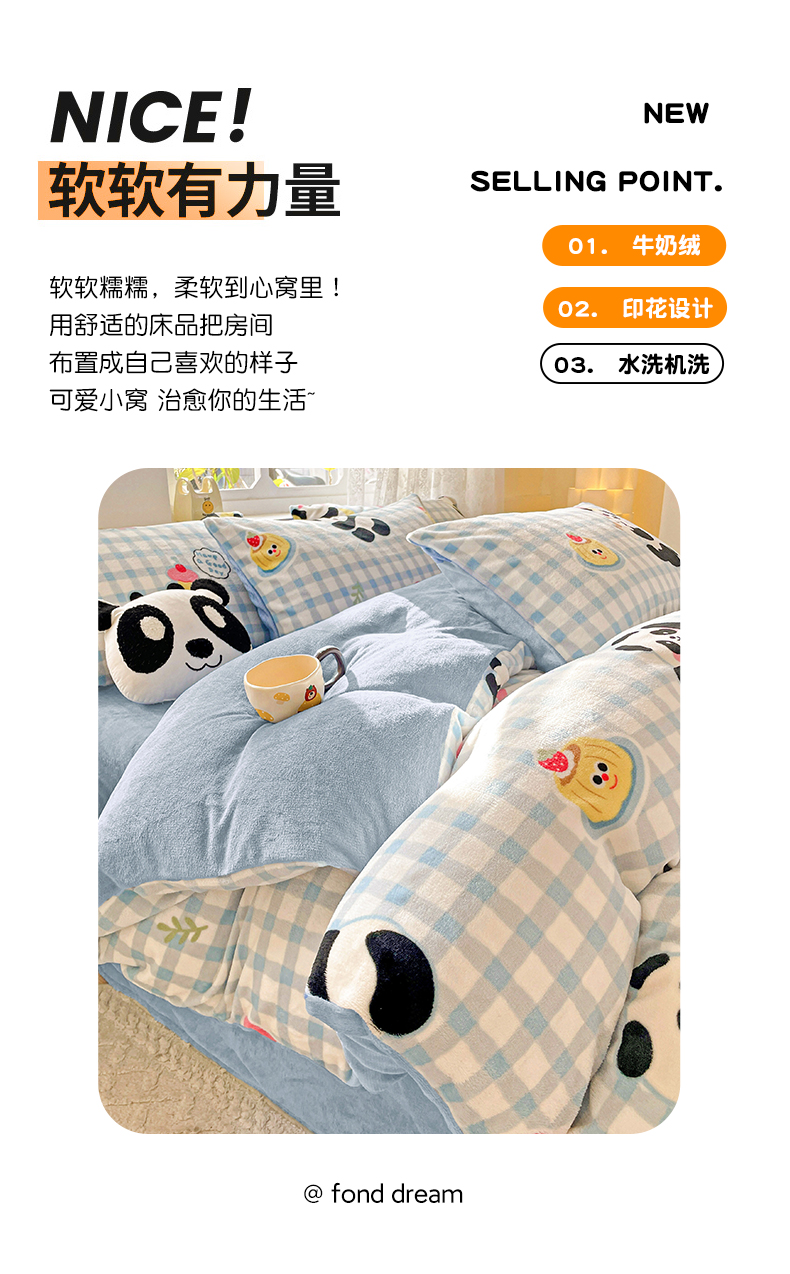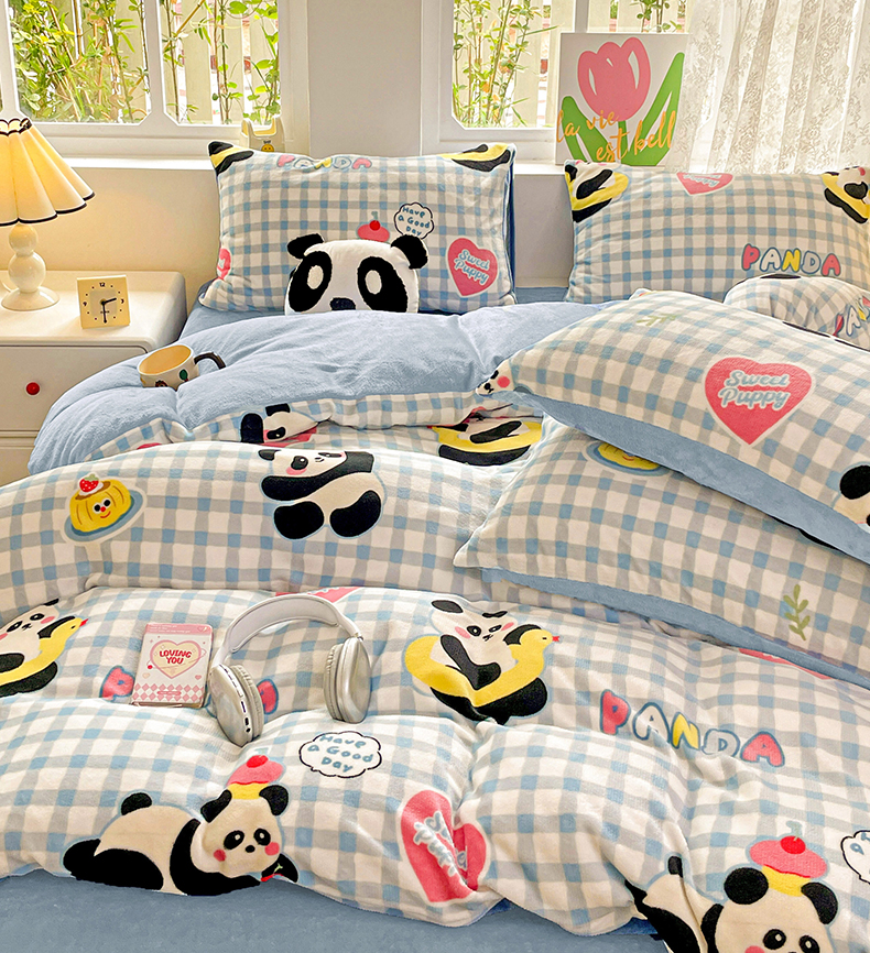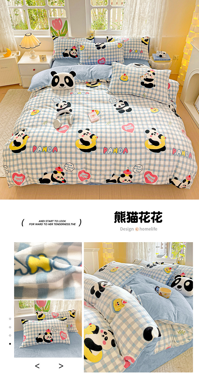 当前位置: 91家纺网 > 商品网购 > 床品套件 > 四件套 > 牛奶绒四件套 > 暖芯优选 2025新款小清新加厚高克重牛奶绒四件套直播热款电商热款 熊猫花花