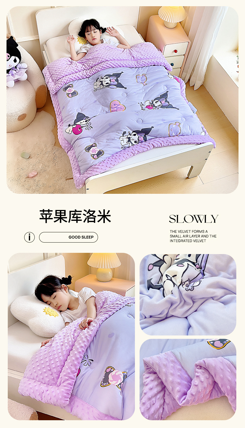 • 91家纺网 家纺一手货源 找家纺 吉咪兔家纺 25年新款三丽鸥库洛米儿童豆豆被针织棉幼儿园宝宝午睡春秋四季婴儿被子苹果库洛米