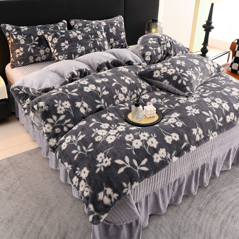 商品名称:德比尔斯 2025新款兔毛绒兔兔绒牛奶绒四件套床盖款 莫奈花园