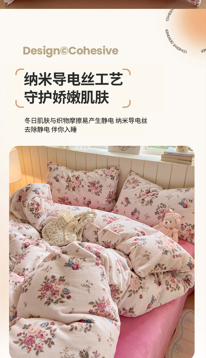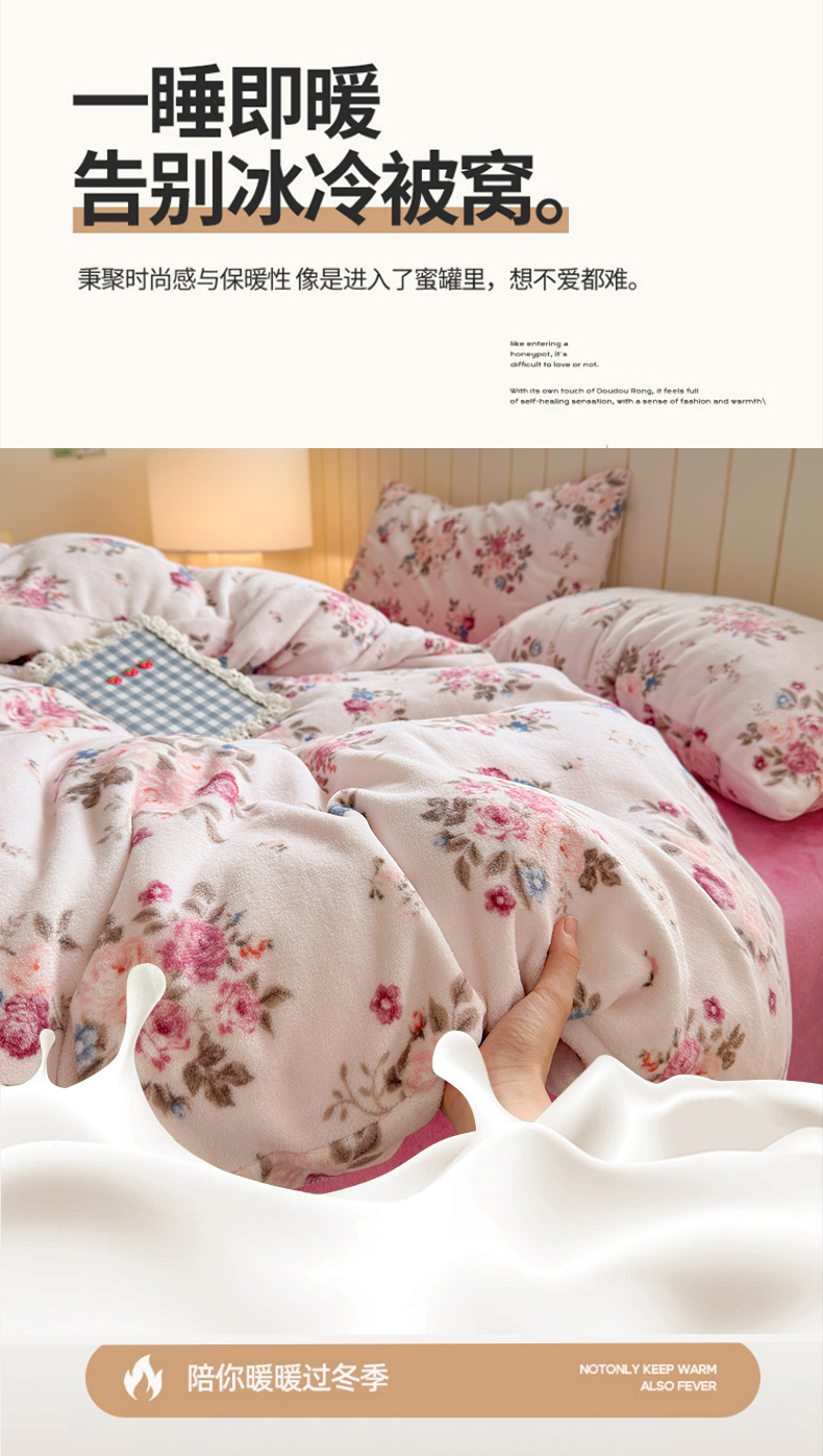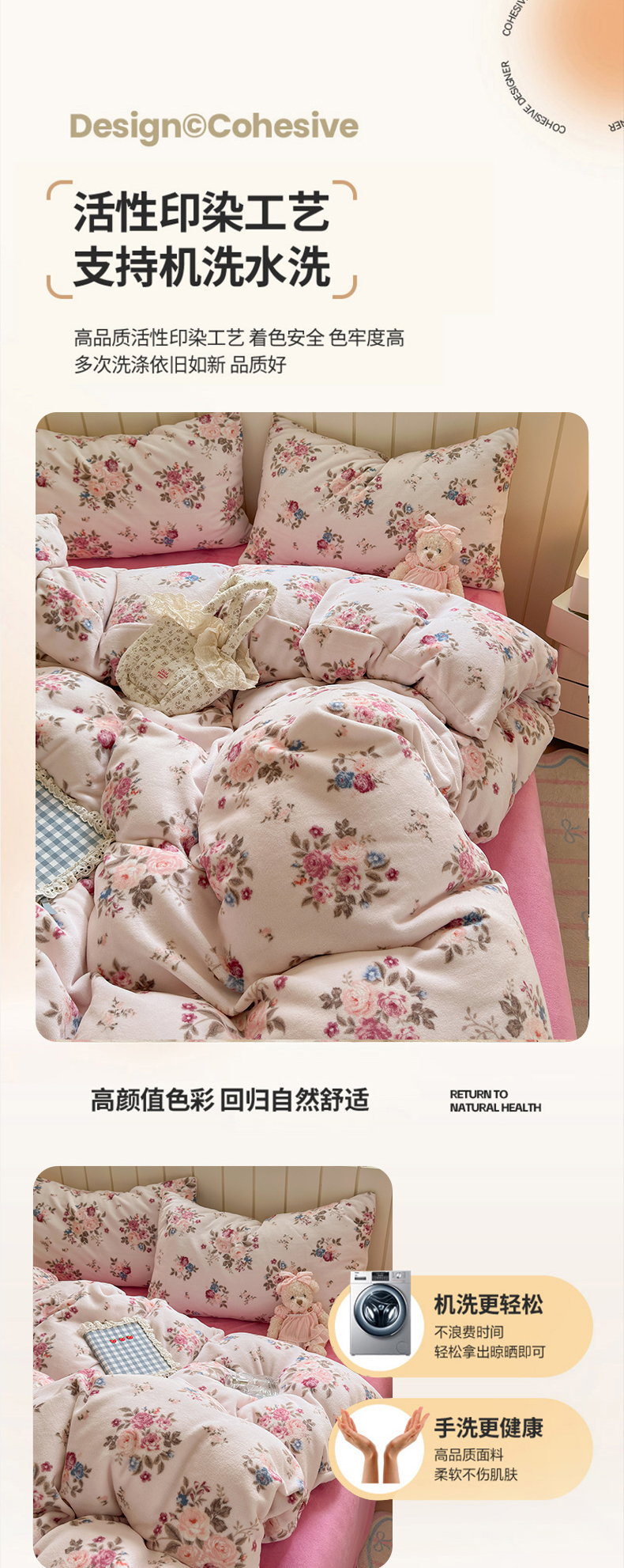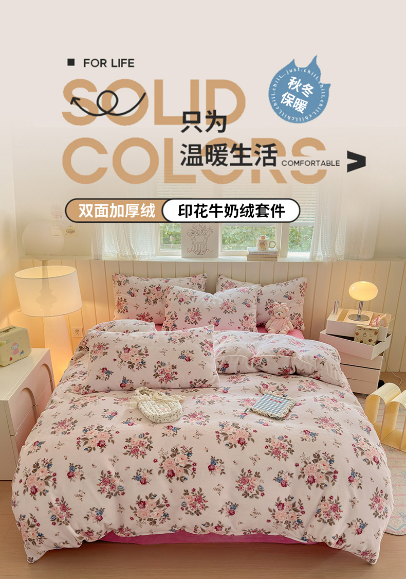 当前位置: 91家纺网 > 商品网购 > 床品套件 > 四件套 > 牛奶绒四件套 > 丽美人家纺 2025新款小版印花牛奶绒四件套 山茶花语-粉