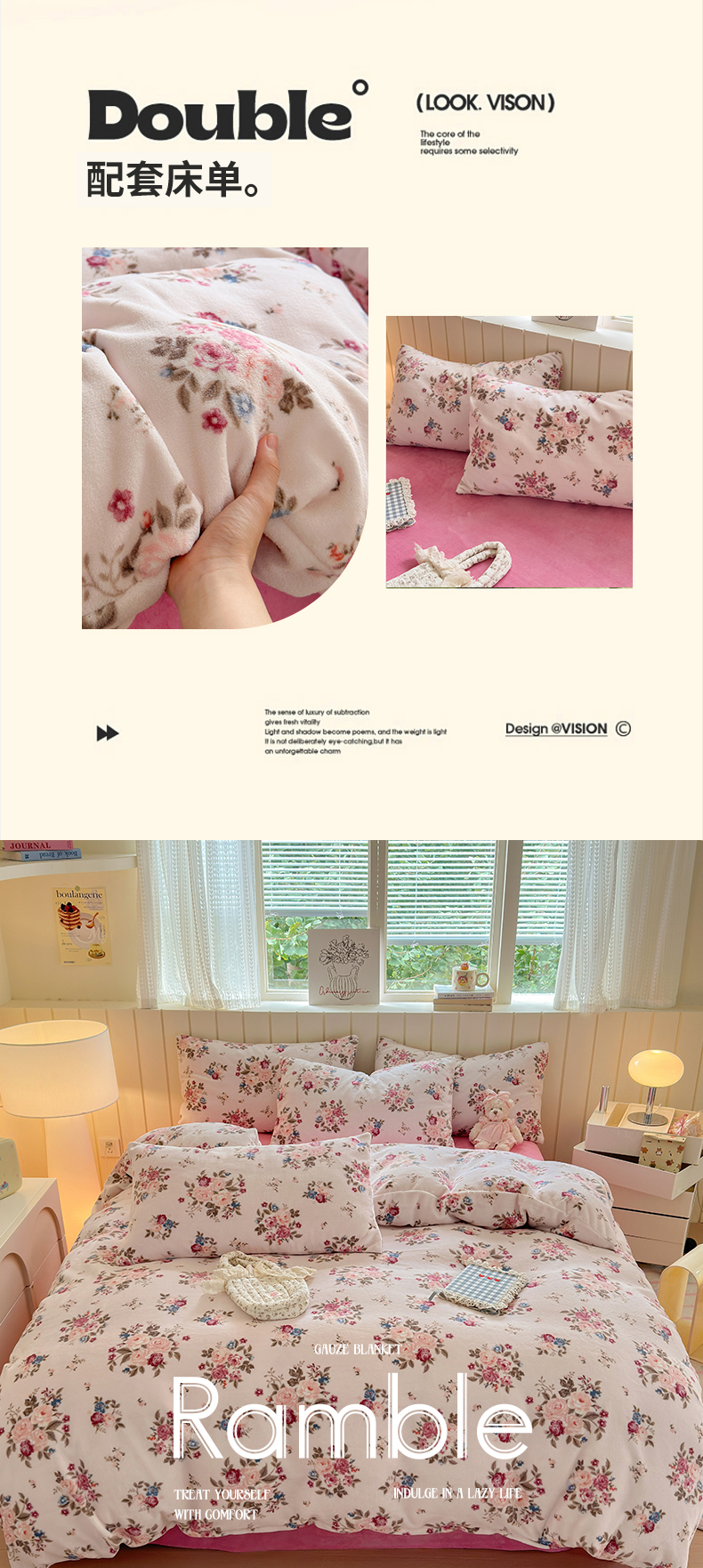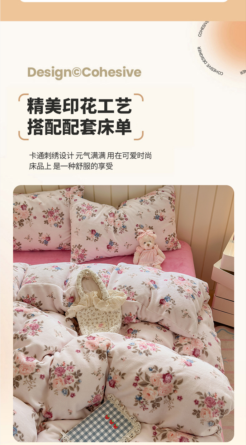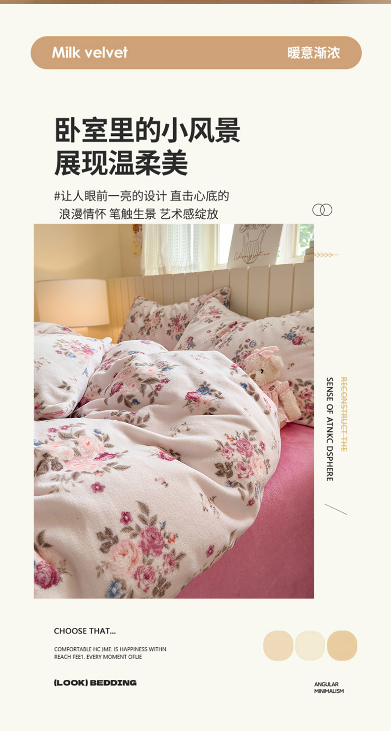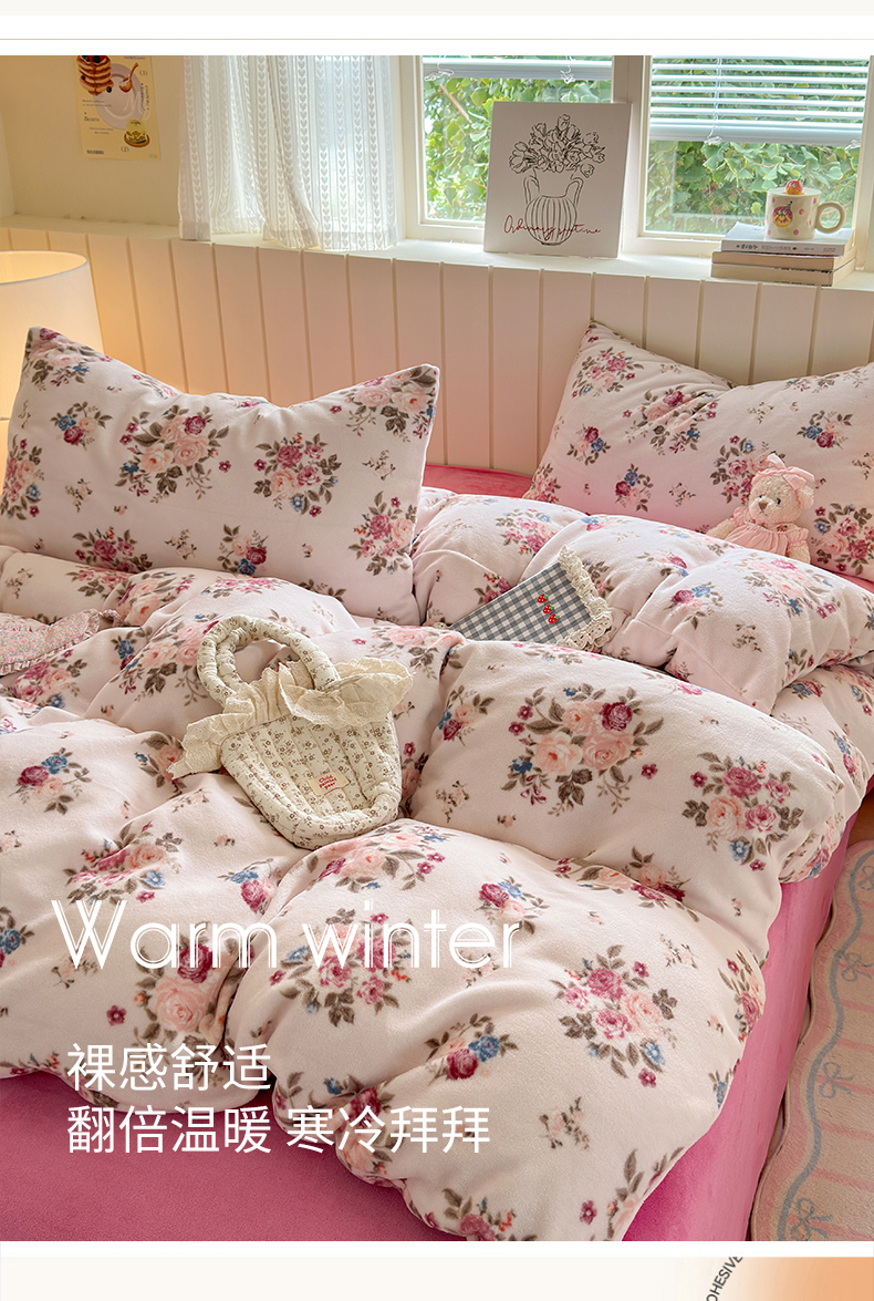 当前位置: 91家纺网 > 商品网购 > 床品套件 > 四件套 > 牛奶绒四件套 > 丽美人家纺 2025新款小版印花牛奶绒四件套 山茶花语-粉
