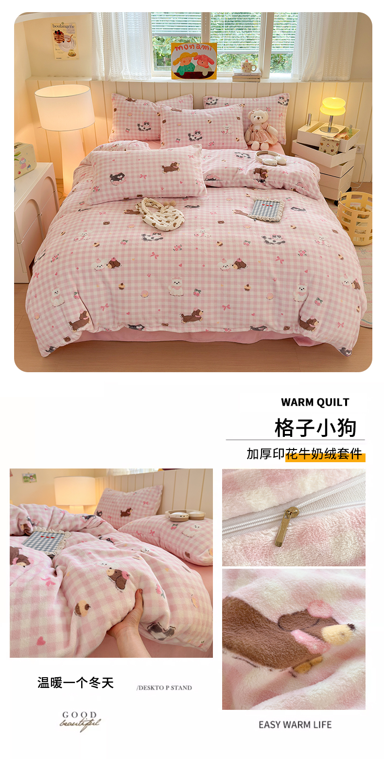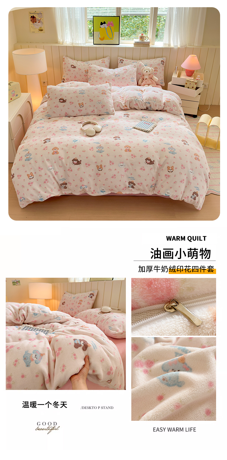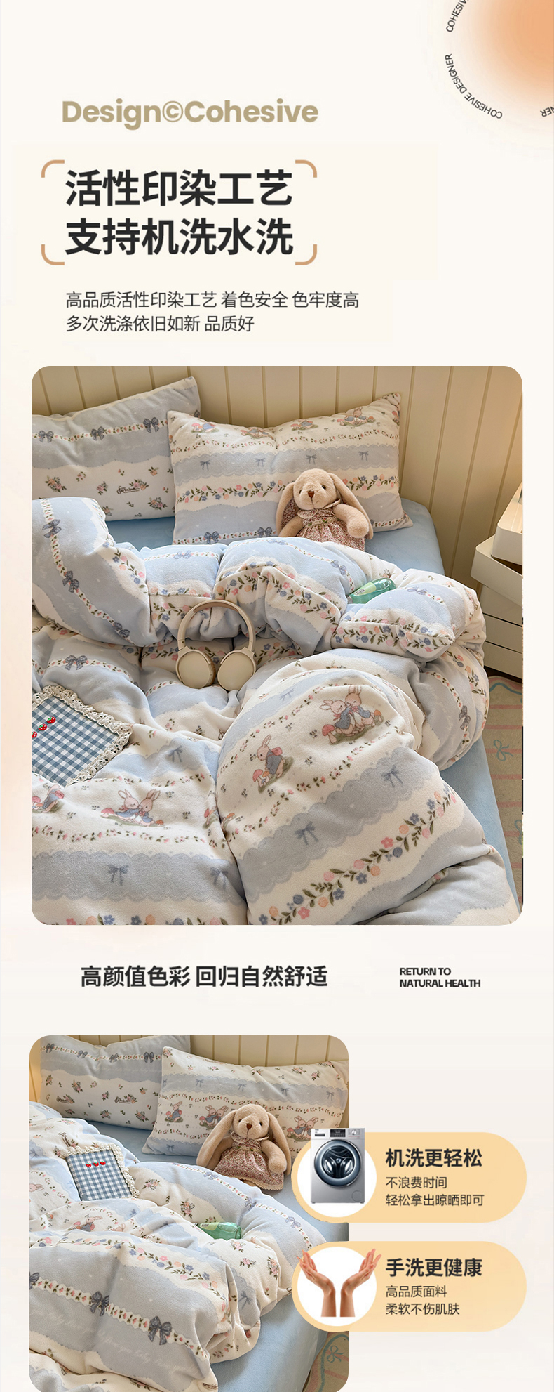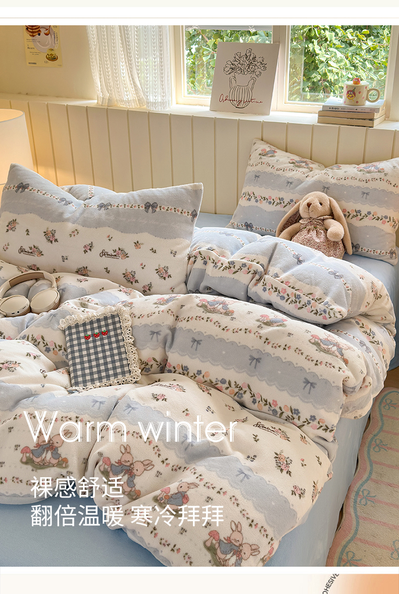 当前位置: 91家纺网 > 商品网购 > 床品套件 > 四件套 > 牛奶绒四件套 > 丽美人家纺 2025新款小版印花牛奶绒四件套 花边小兔