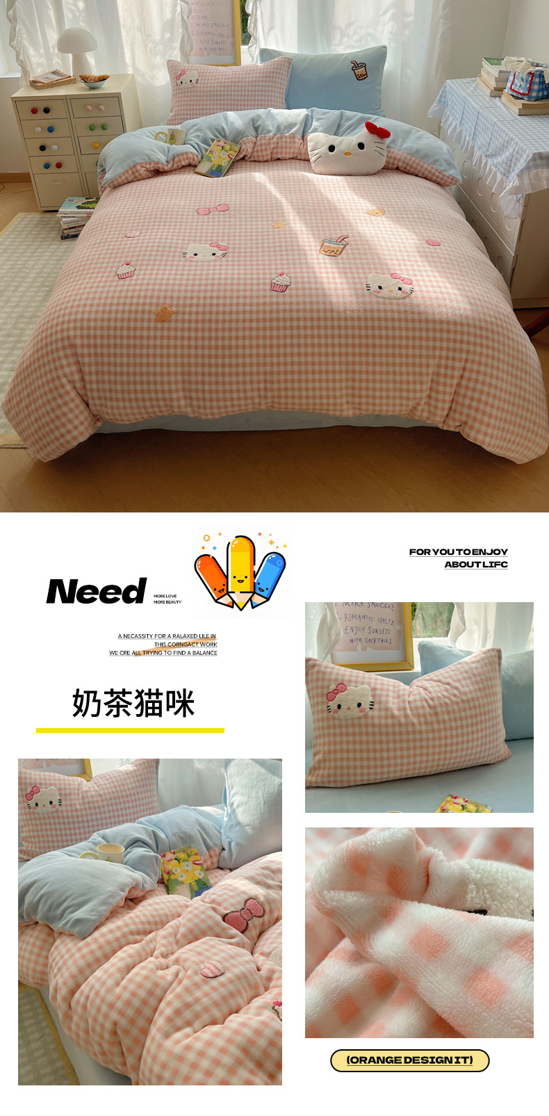 商品名称:(总)雨帆家纺 2025新款亲肤舒适可爱卡通牛奶绒毛巾绣四件套