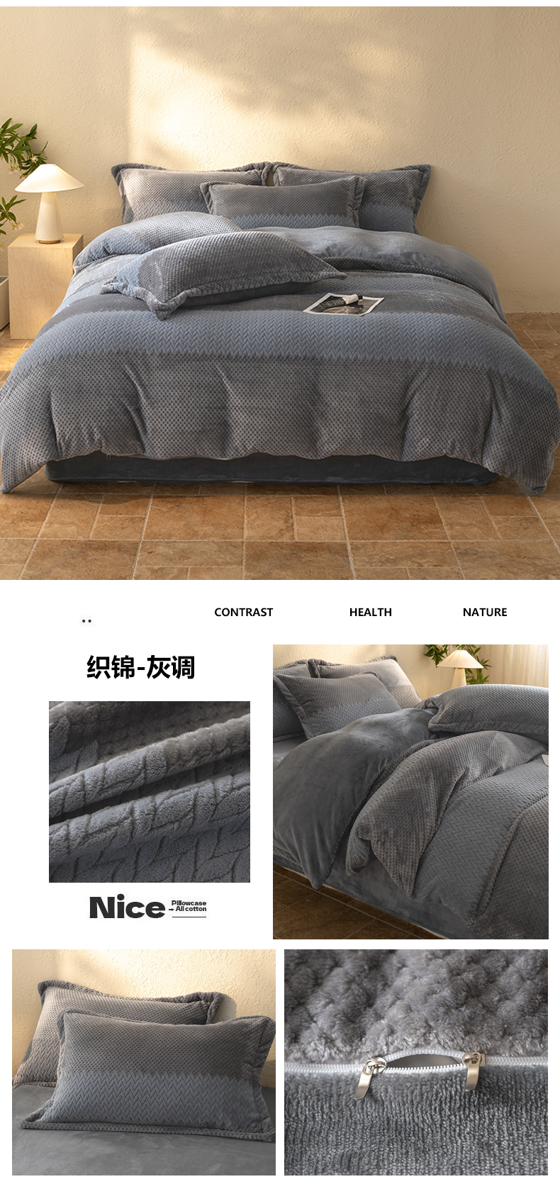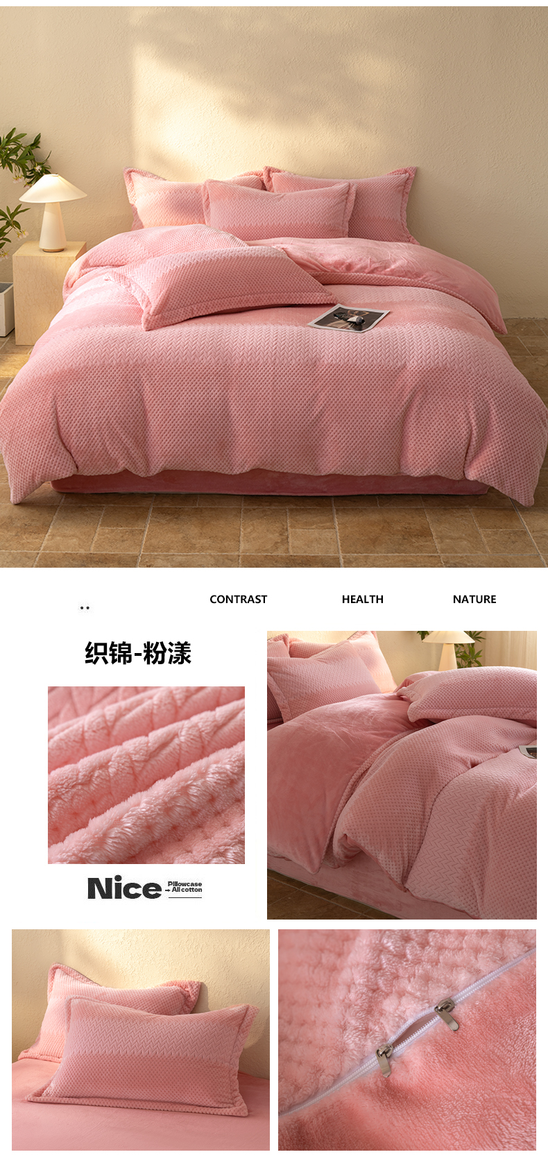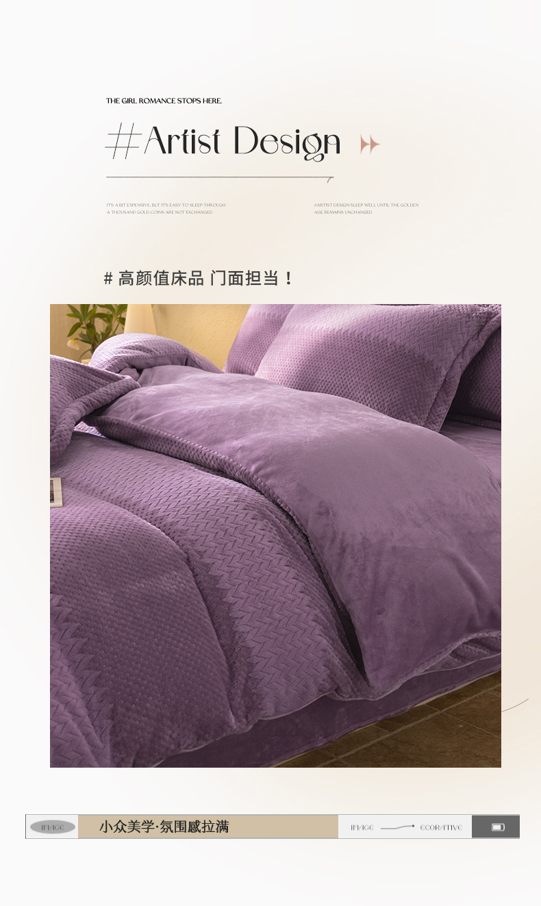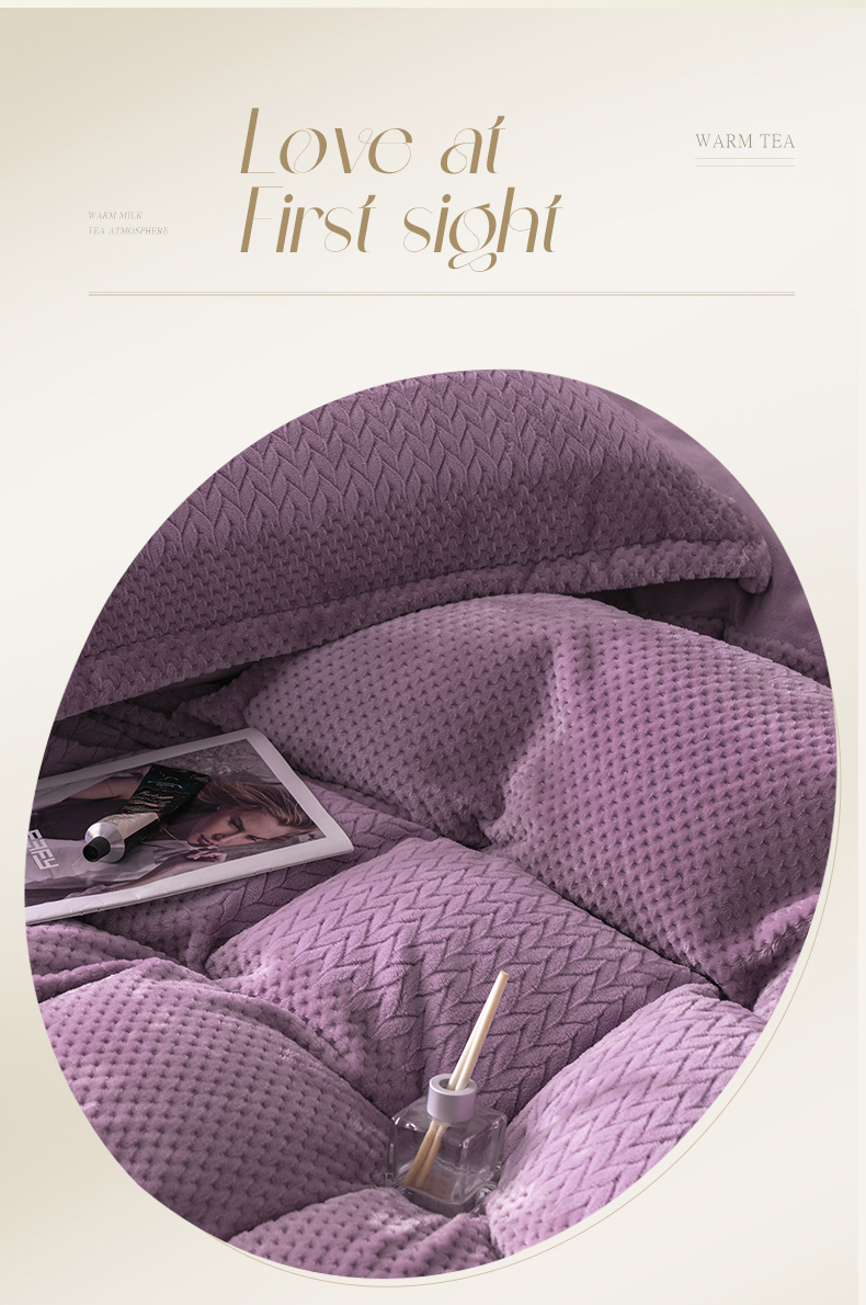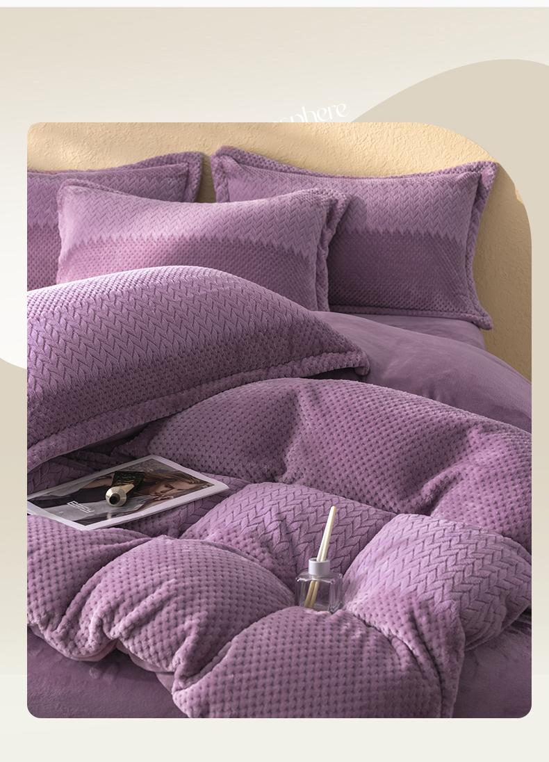当前位置: 91家纺网 > 商品网购 > 床品套件 > 四件套 > 牛奶绒四件套 > 源舍家纺 2025新款色织拼色编织提花轻奢牛奶绒四件套(场景二) 织锦-紫菱