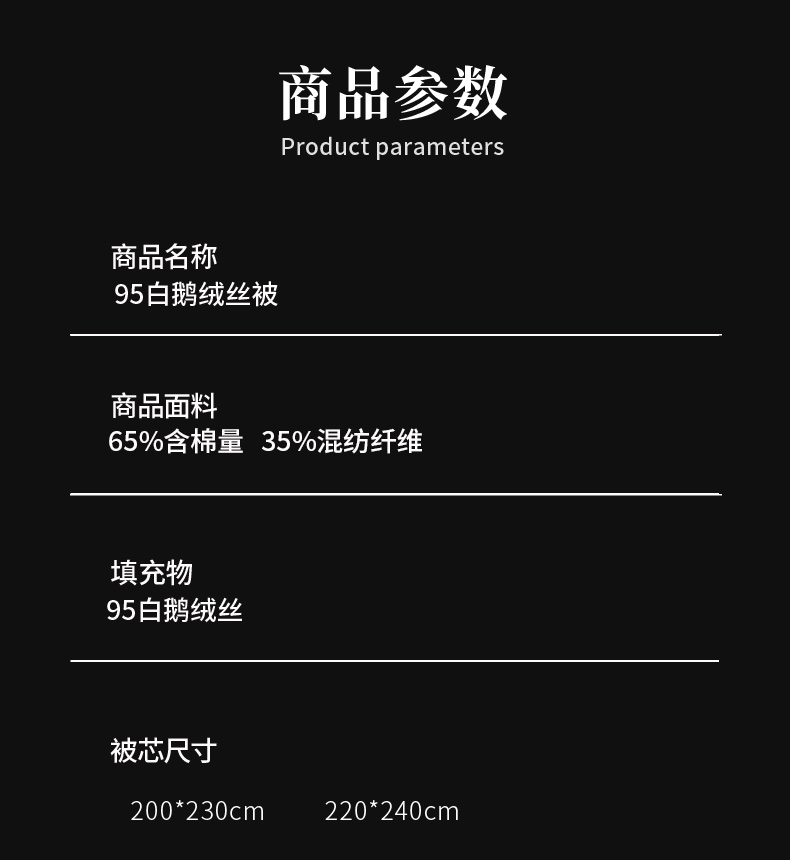• 被子种类: 羽绒被