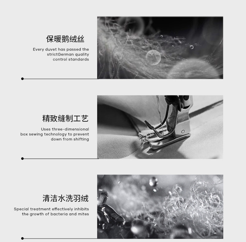 • 羽绒羽毛种类: 白鹅绒