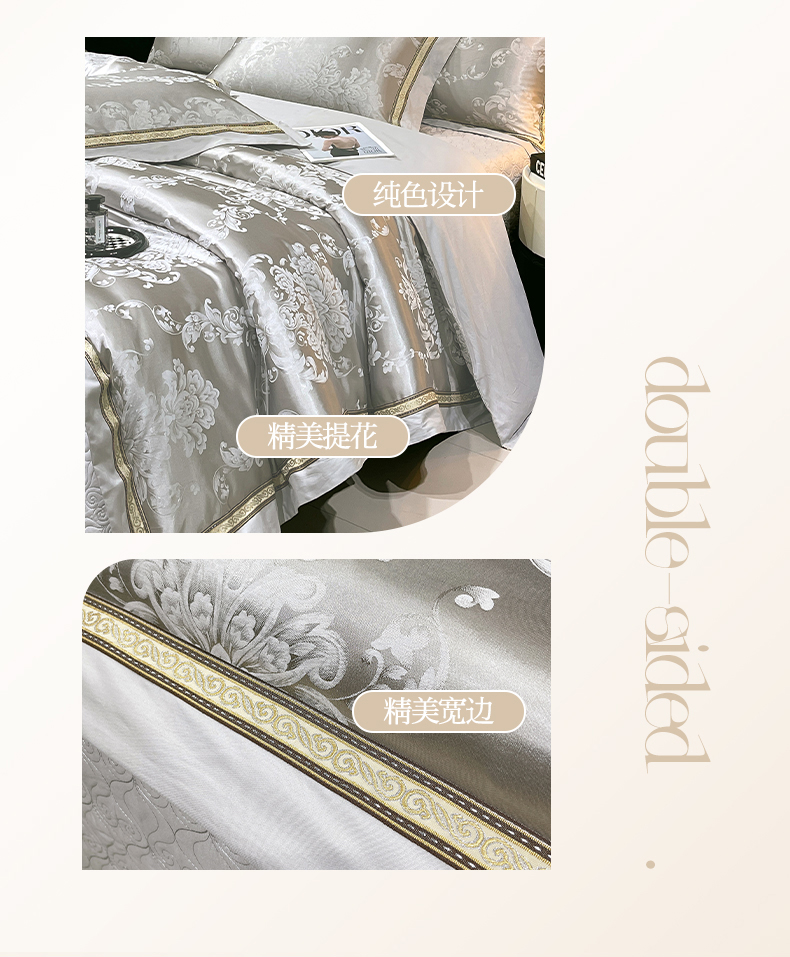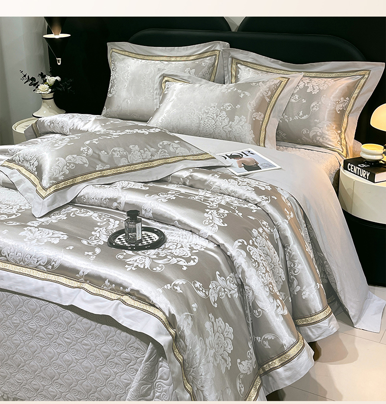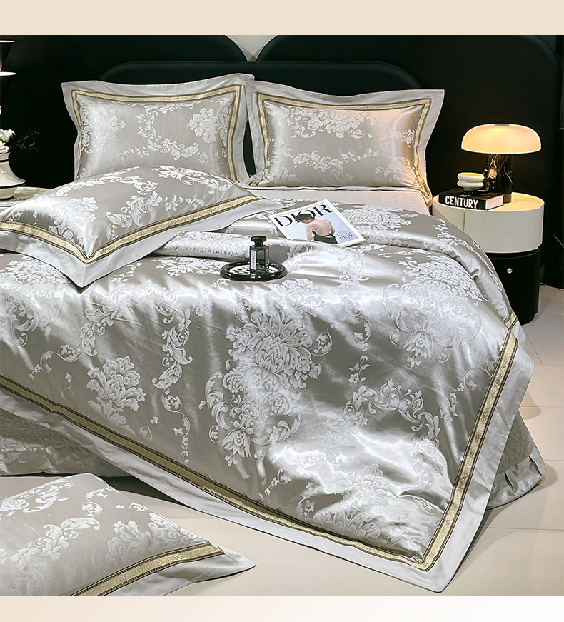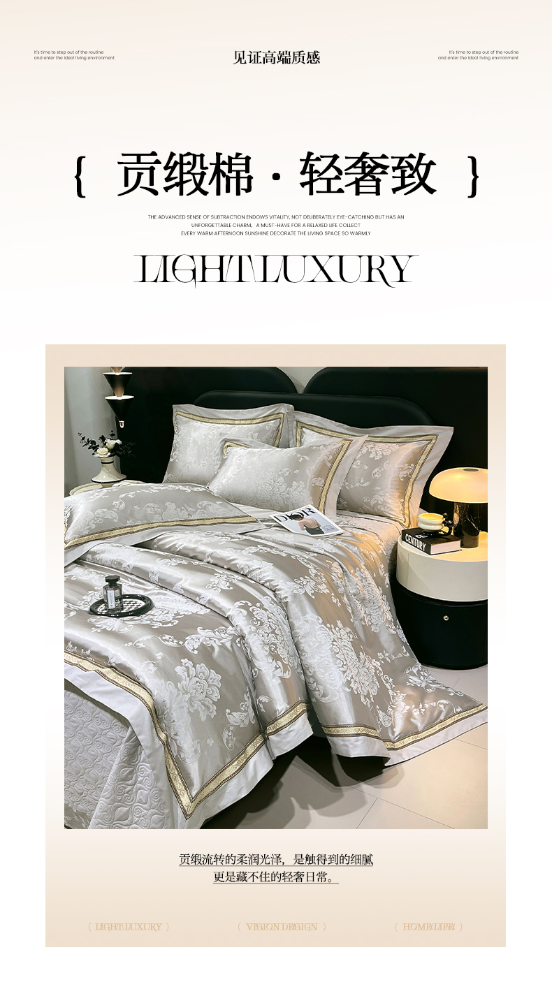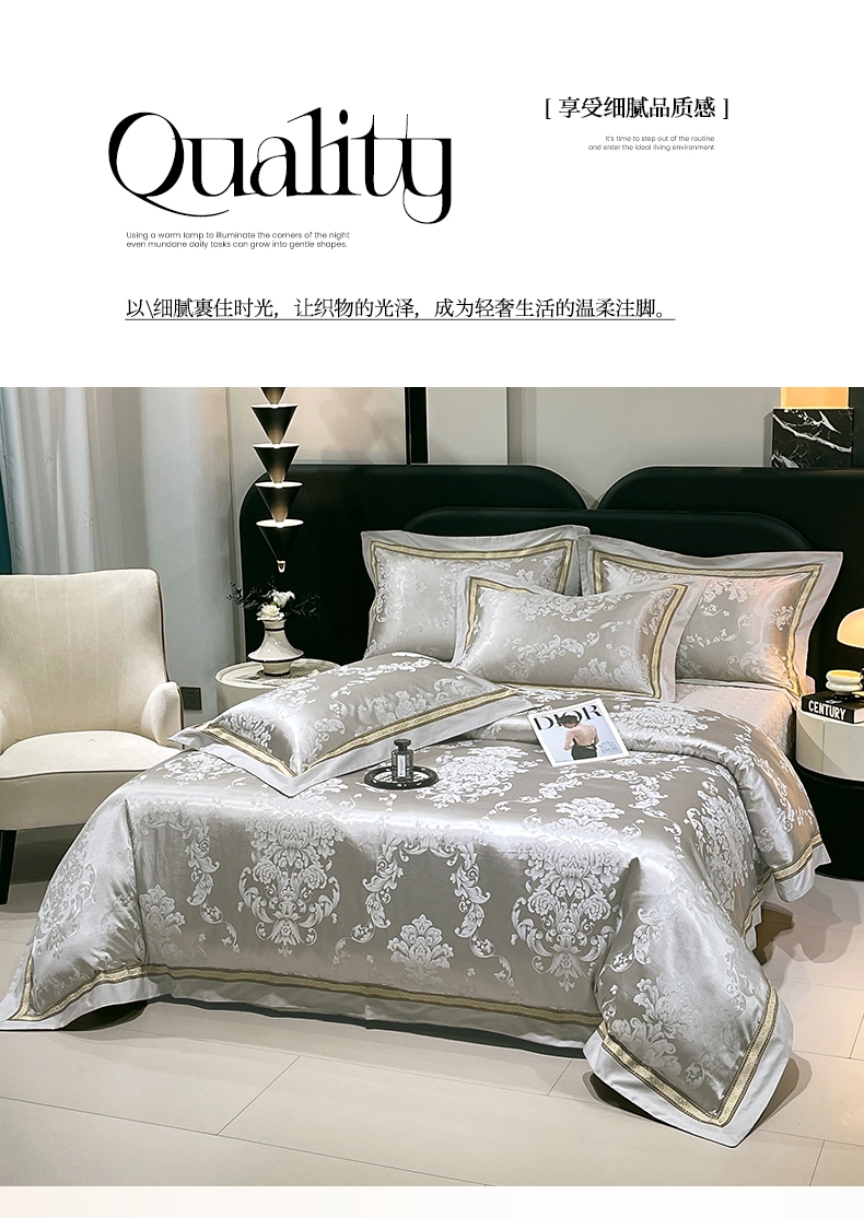 当前位置: 91家纺网 > 商品网购 > 床品套件 > 四件套 > 贡缎全棉四件套 > 小时代家纺 2025新款纯棉贡缎提花夹棉床盖四件套 维尼斯-浅灰