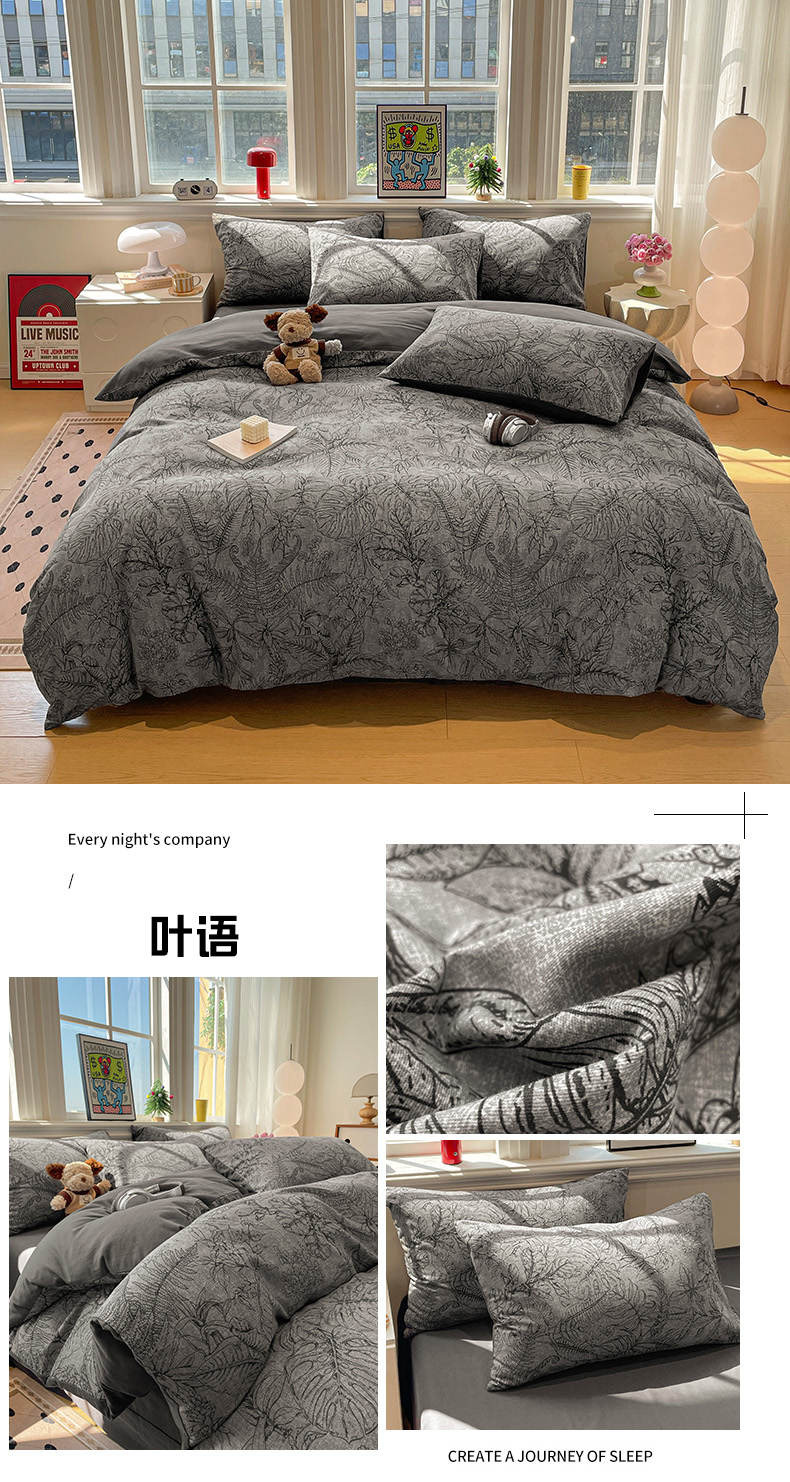 (总)忆生活家纺 2025秋冬新品软糯缇肤绒印花贝壳边四件套,卡拉-灰,开心熊-米,南笙-咖,南笙-绿,浅夏-咖,素影-酒红,素影-紫,小樱桃-酒红,叶茂-驼
