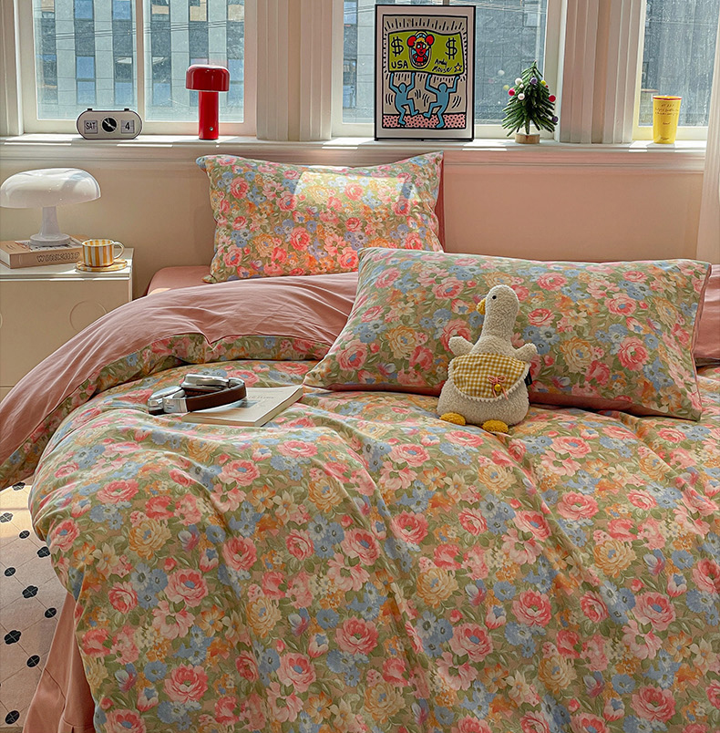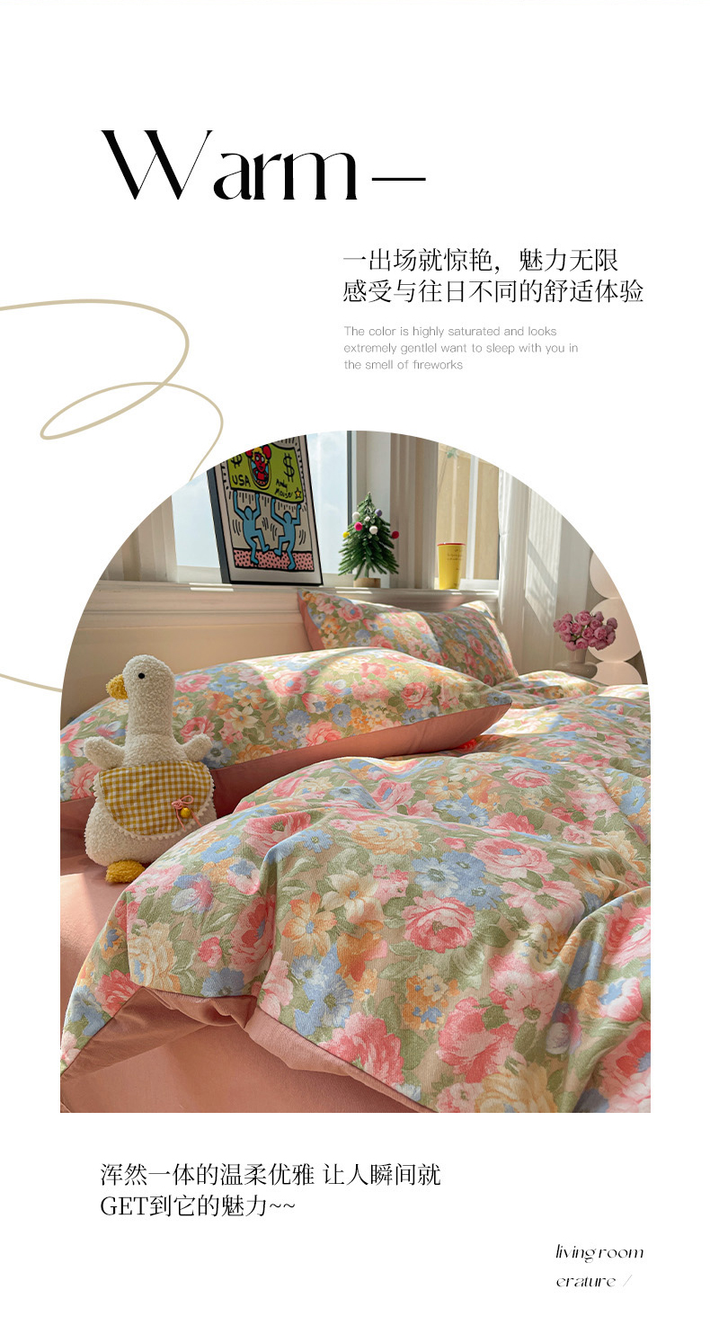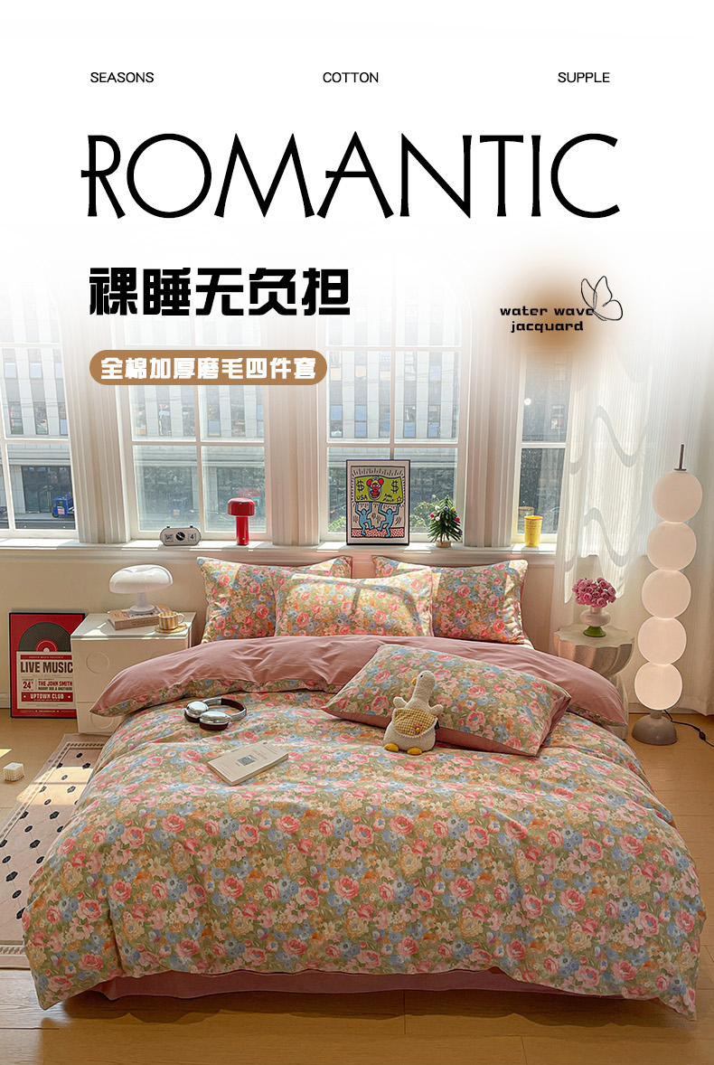 忆生活 2025新款秋冬复古风全棉加厚磨毛四件套 花汐