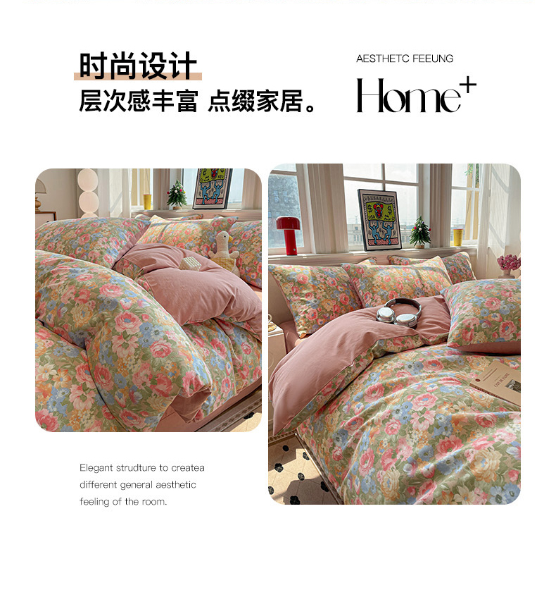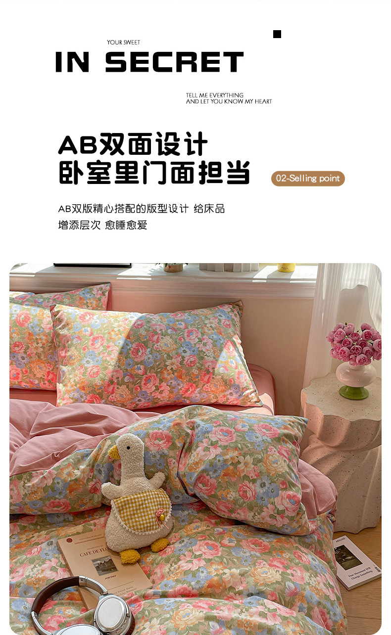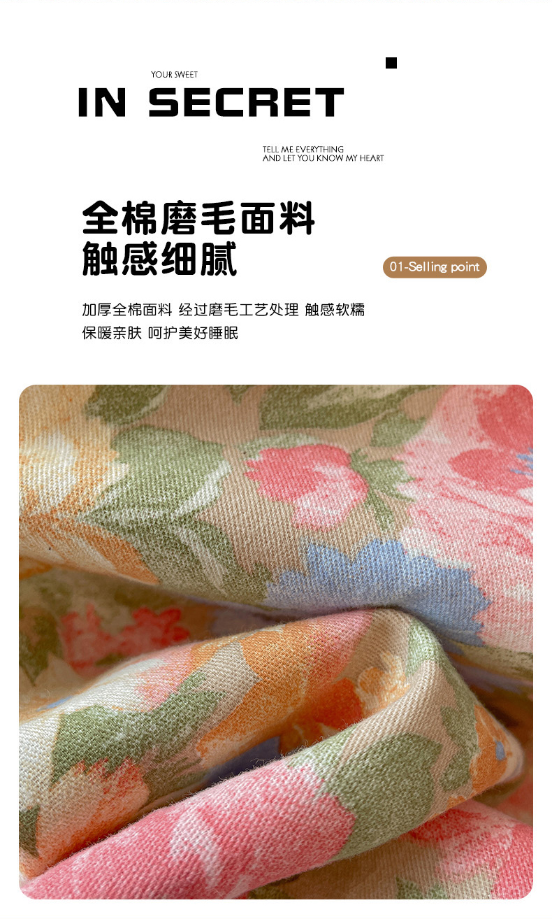 商品名称:忆生活 2025新款秋冬复古风全棉加厚磨毛四件套 花汐