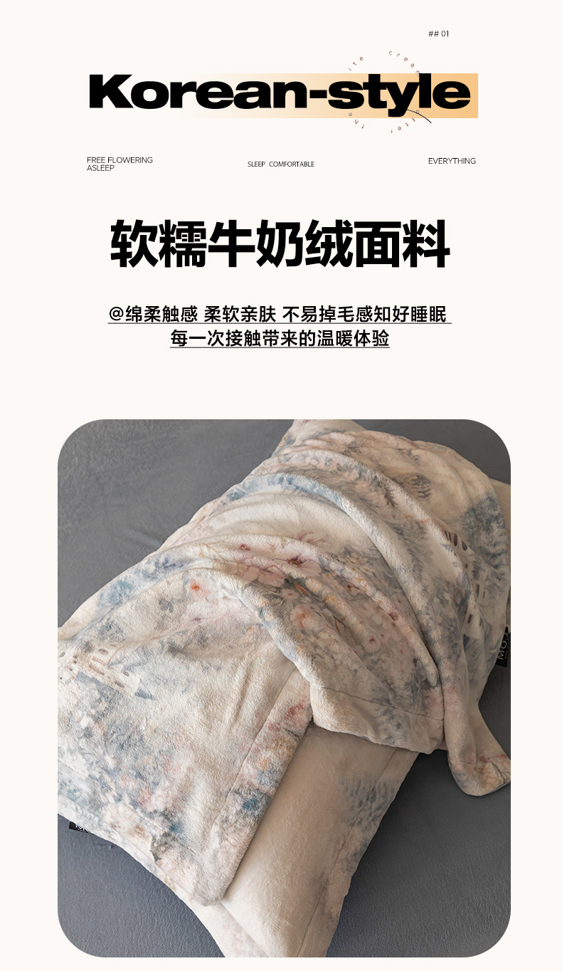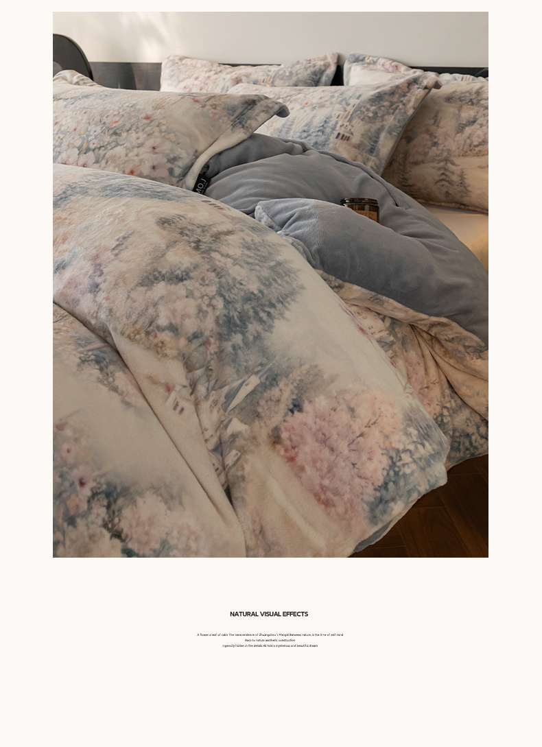 当前位置: 91家纺网 > 商品网购 > 床品套件 > 四件套 > 其它四件套 > 寐绸家纺 2025秋冬新款230g牛奶绒数码印花四件套 数码四件套-花梦