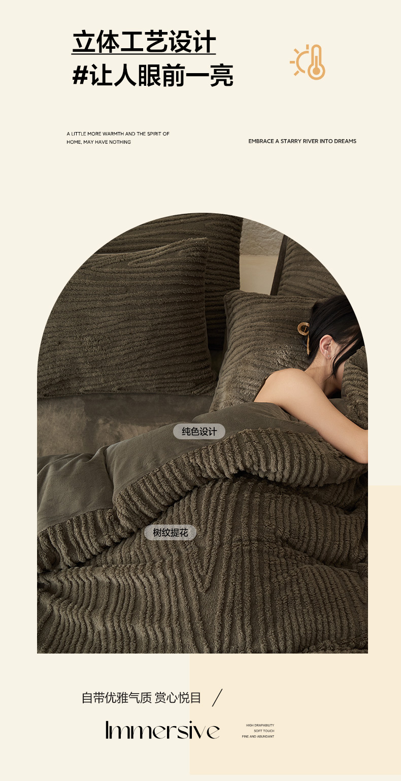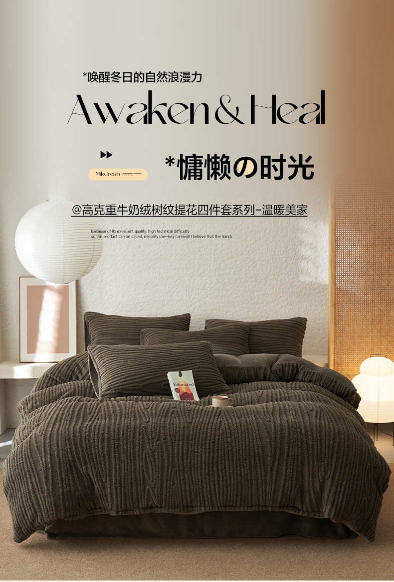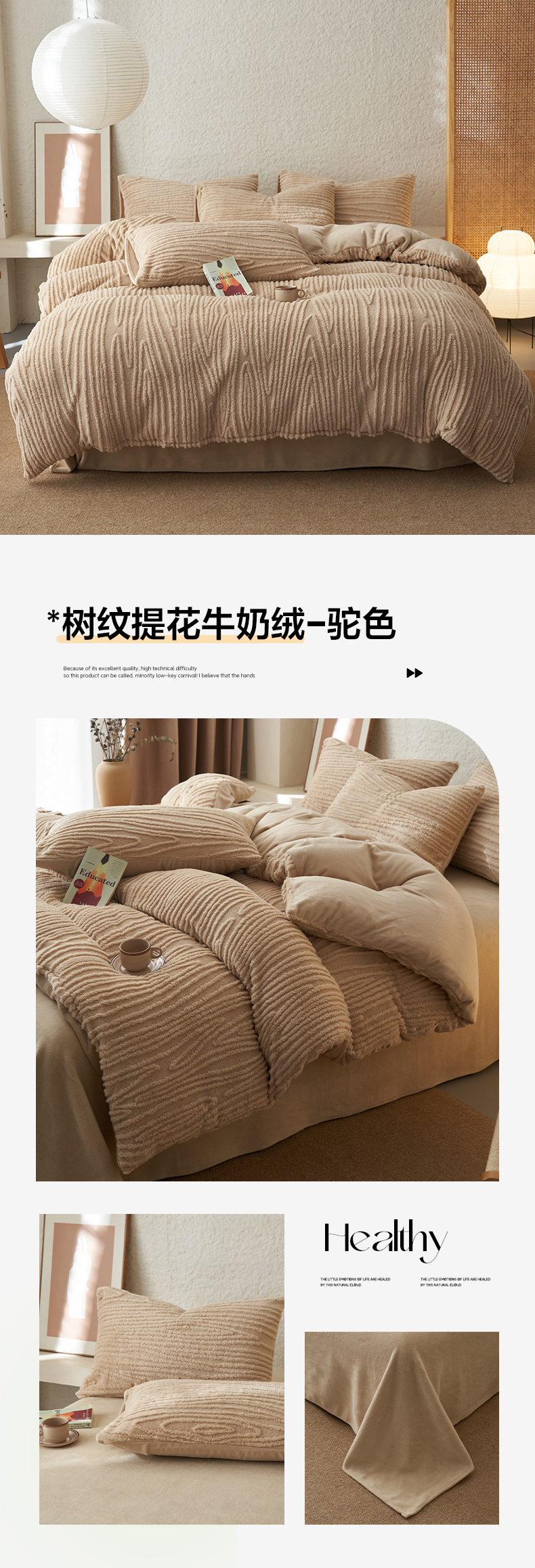 当前位置: 91家纺网 > 商品网购 > 床品套件 > 四件套 > 牛奶绒四件套 > 寐绸家纺 2025秋冬新款230g牛奶绒树纹提花四件套 树纹提花牛奶绒-浅灰