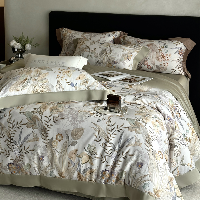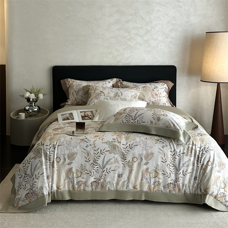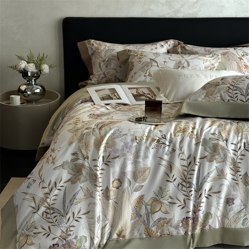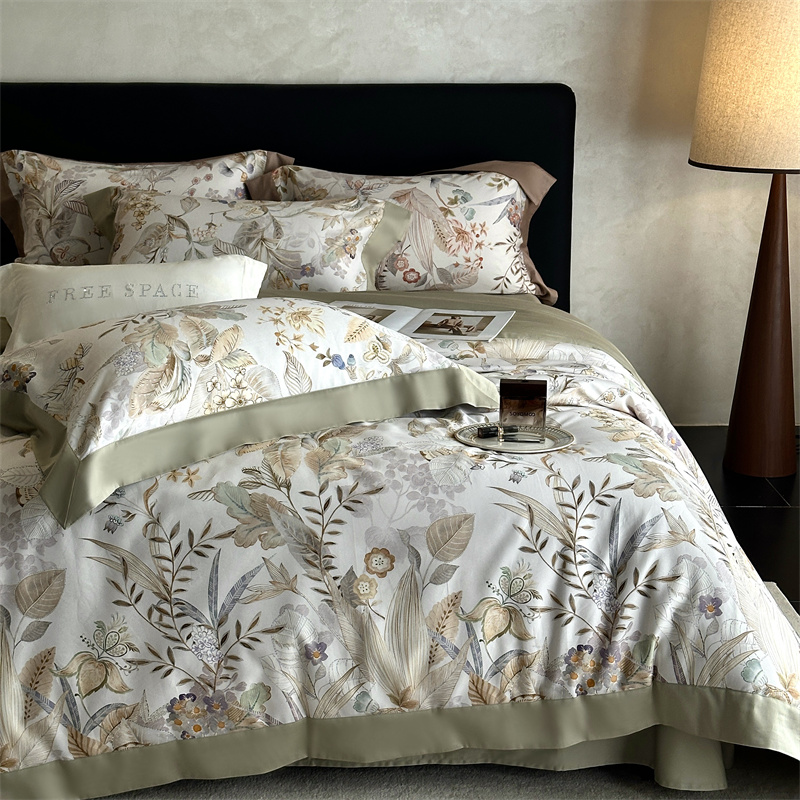 南泉坊 2025新款长绒棉纯棉丝光工艺数码印花四件套 晚柠-绿