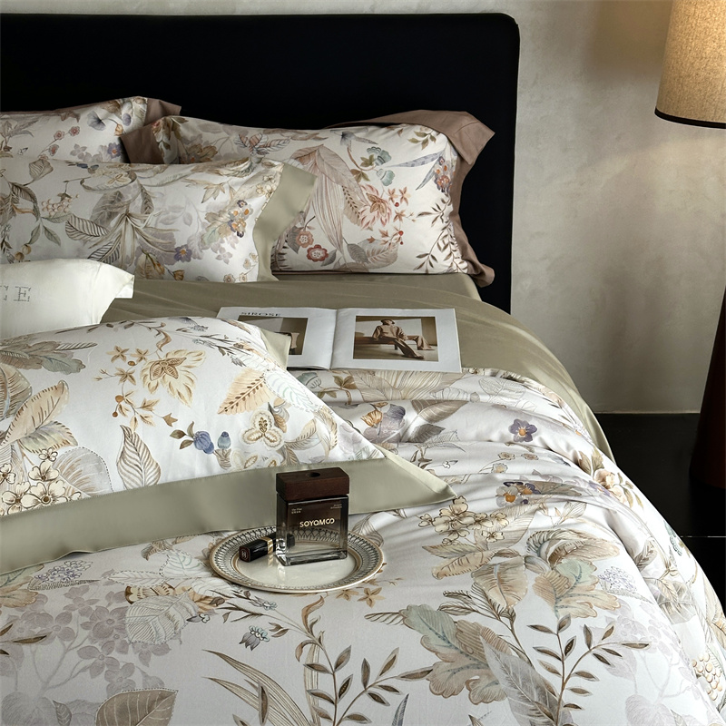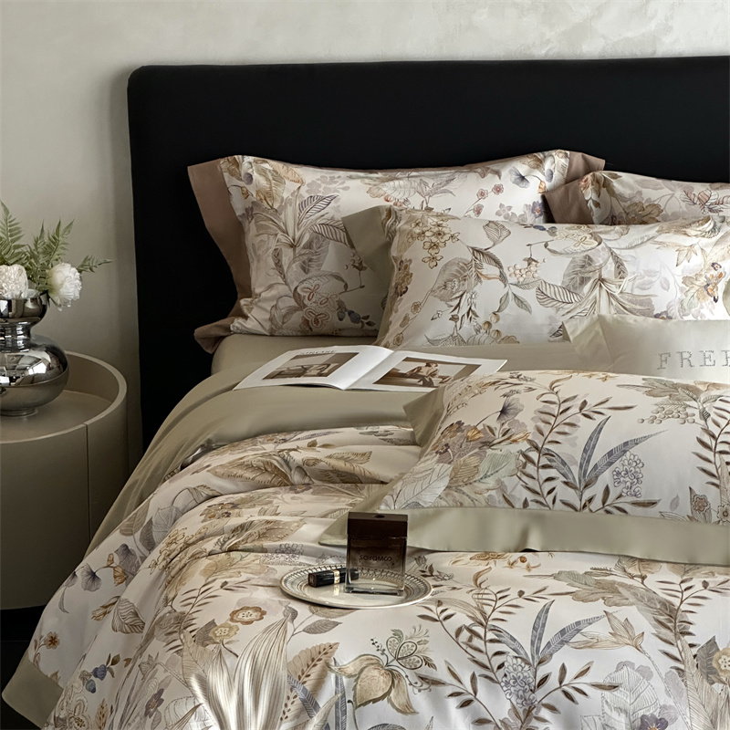 (总)南泉坊 2025新款60支全棉纯棉数码印花磨毛四件套,知薇-曲奇色,知薇-粉,知薇-灰咖,知薇-嫩芽色
