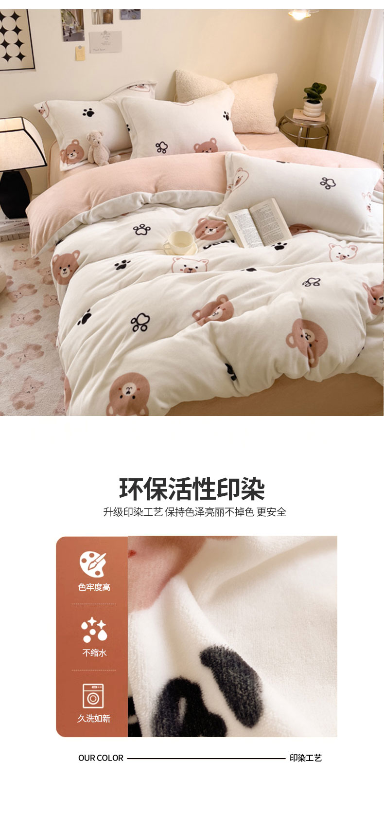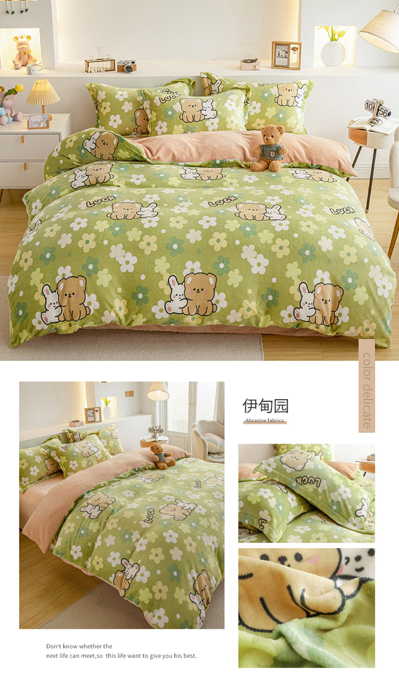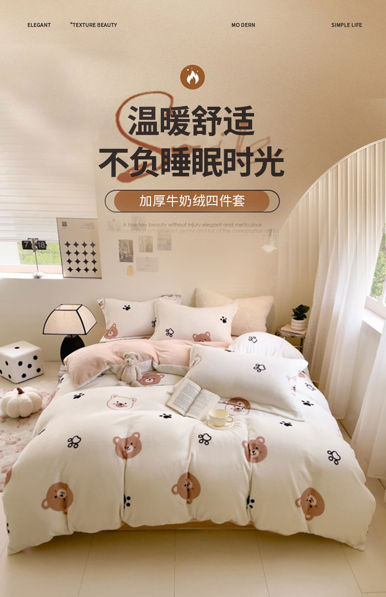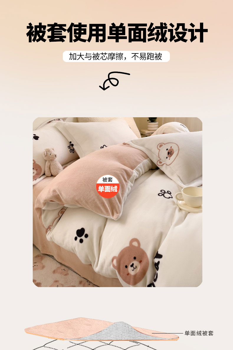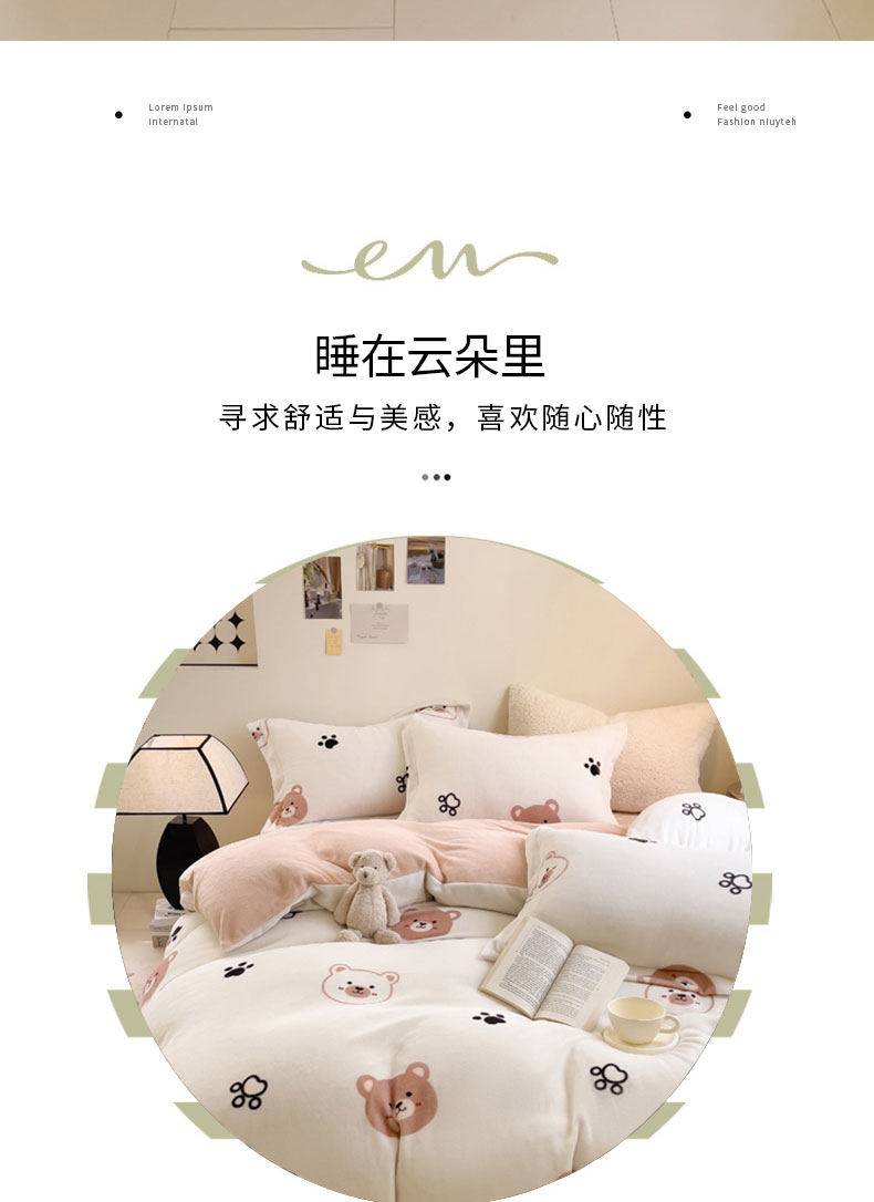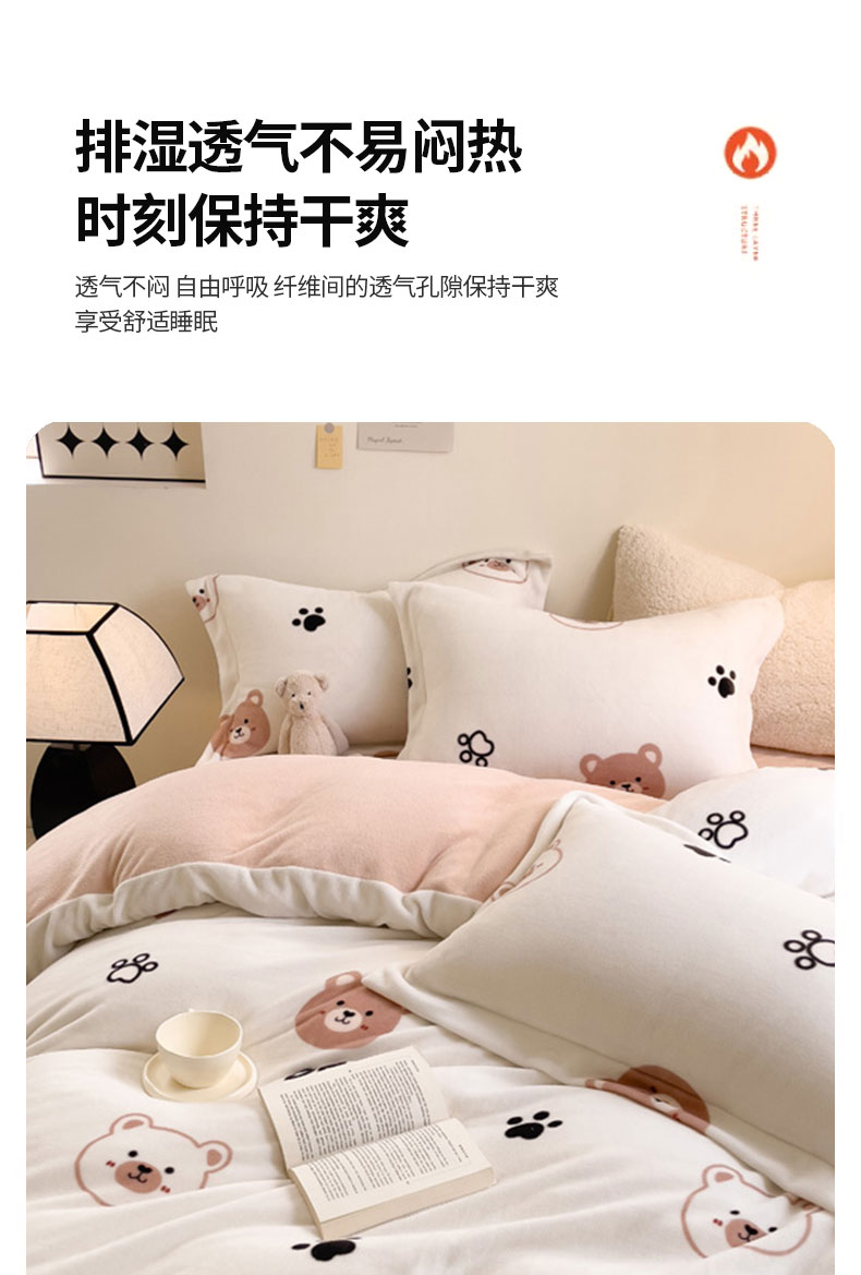 当前位置: 91家纺网 > 商品网购 > 床品套件 > 四件套 > 牛奶绒四件套 > 宅部落 2025新款高克重牛奶绒四件套法莱绒三件套单被套 熊的脚印