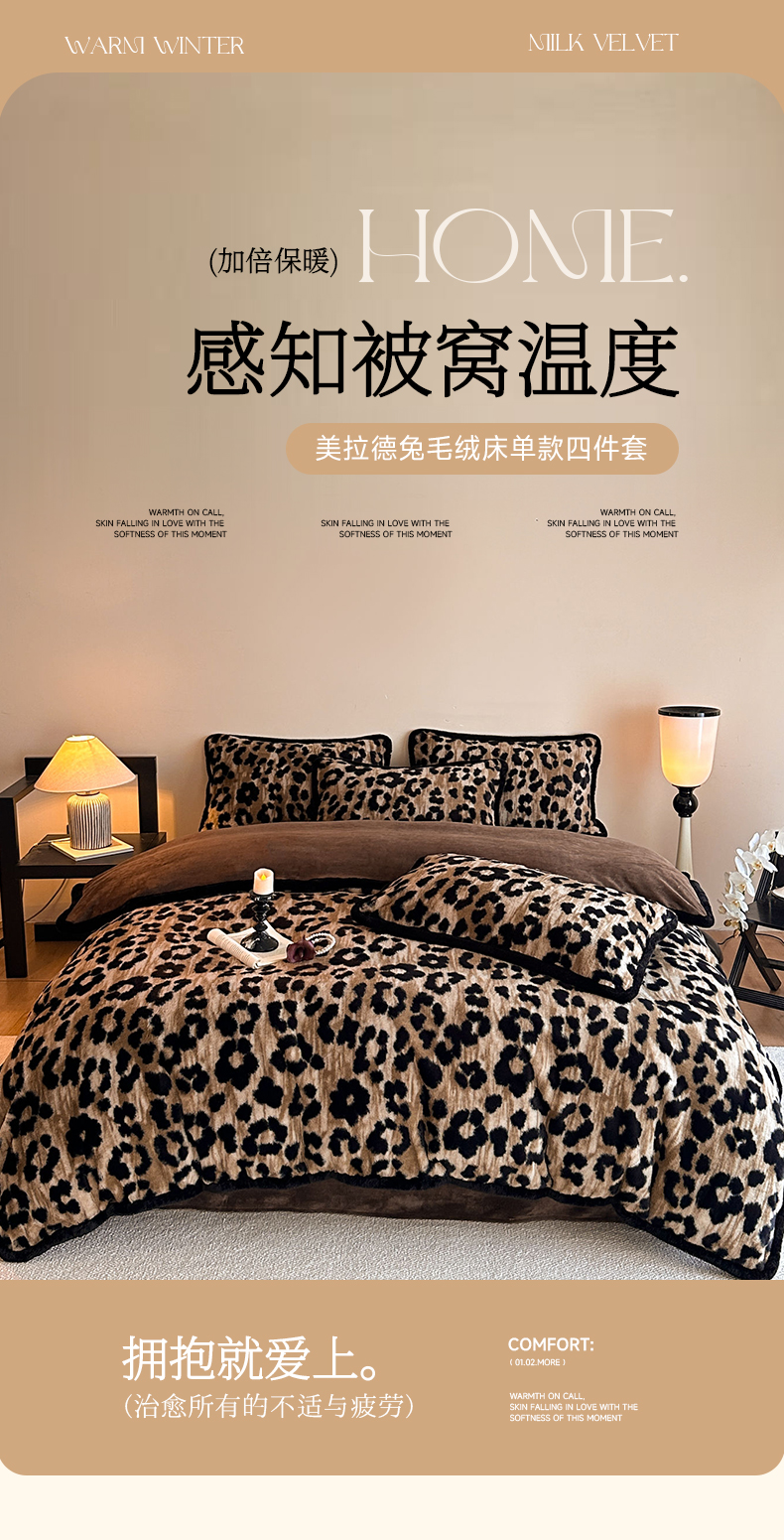 当前位置: 91家纺网 > 商品网购 > 床品套件 > 四件套 > 兔毛绒四件套 > 梵克保罗 2025秋冬新款加厚8斤包边款美拉德仿兔毛皮草牛奶绒四件套 美拉德包边款-鎏金豹迹
