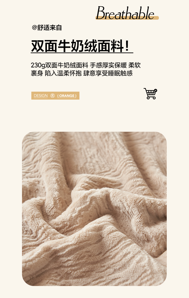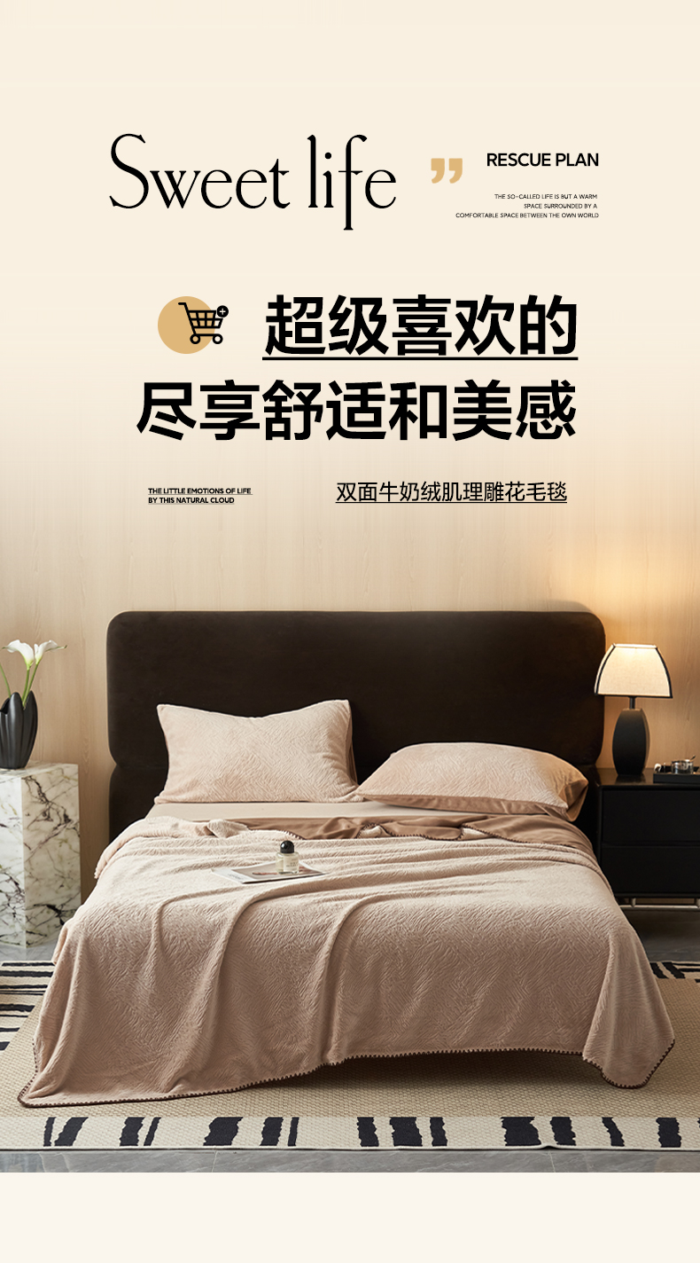商品名称:寐绸家纺 2025新款230g牛奶绒肌理感雕花毛毯 肌理毛毯-浅驼