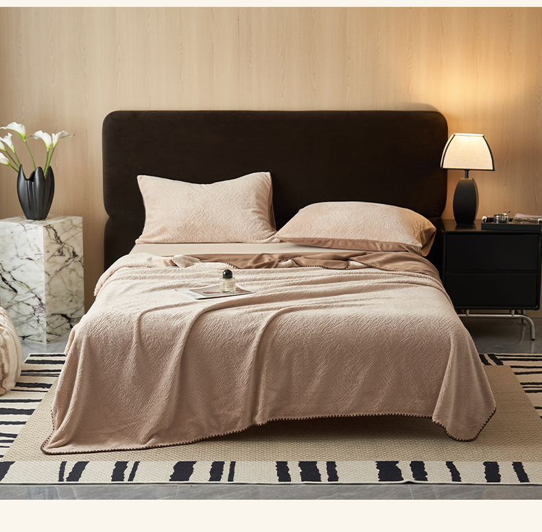 寐绸家纺 2025新款230g牛奶绒肌理感雕花毛毯 肌理毛毯-浅驼