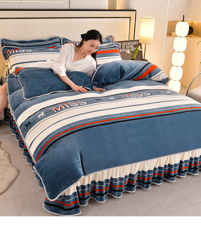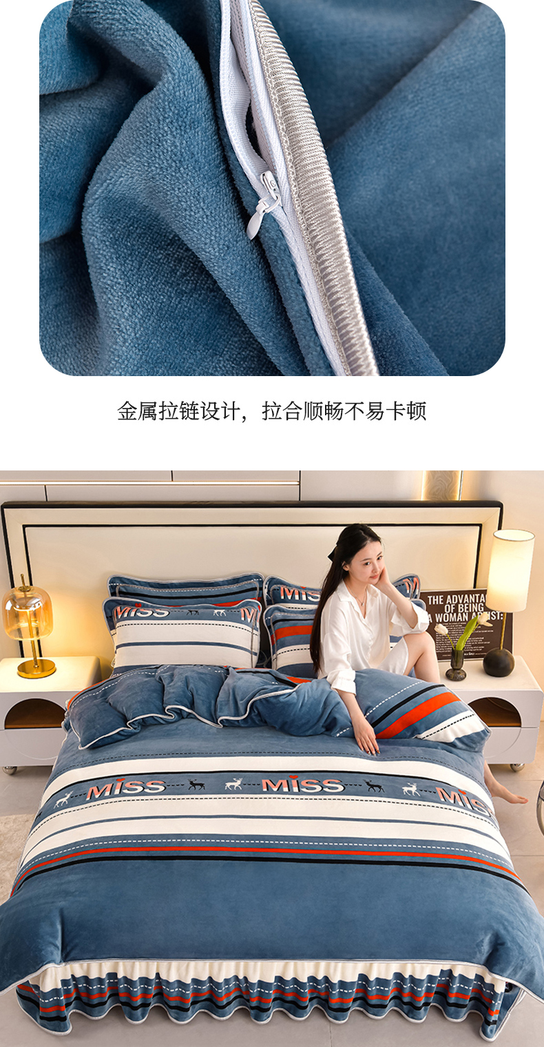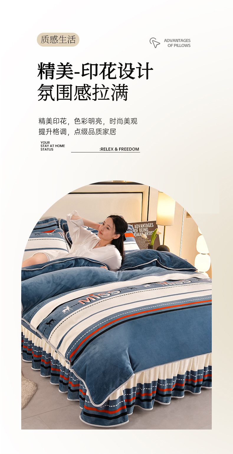 妮恒美 2025新款牛奶绒印花床裙款四件套法莱绒四件套珊瑚金貂绒四件套 飞驰人生