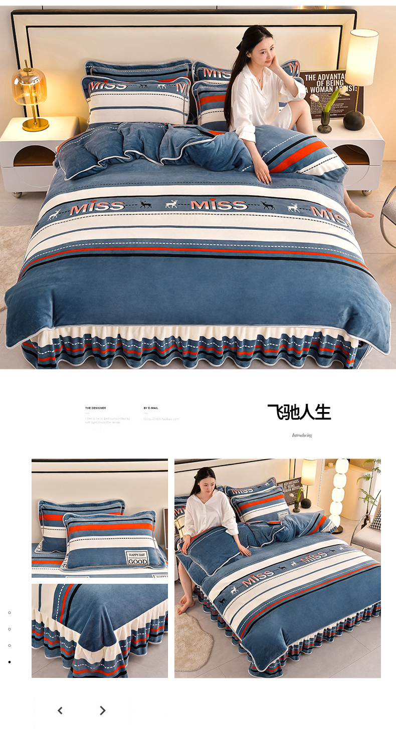 商品名称:妮恒美 2025新款牛奶绒印花床裙款四件套法莱绒四件套珊瑚金貂绒四件套 飞驰人生