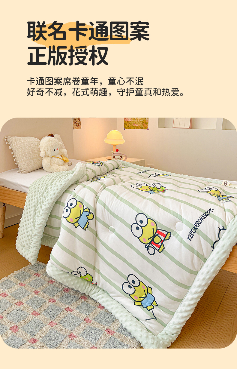 • 91家纺网 家纺一手货源 找家纺 名兮家居 2025新款经典奥特曼三丽鸥豆豆被被子被芯 条纹大眼蛙
