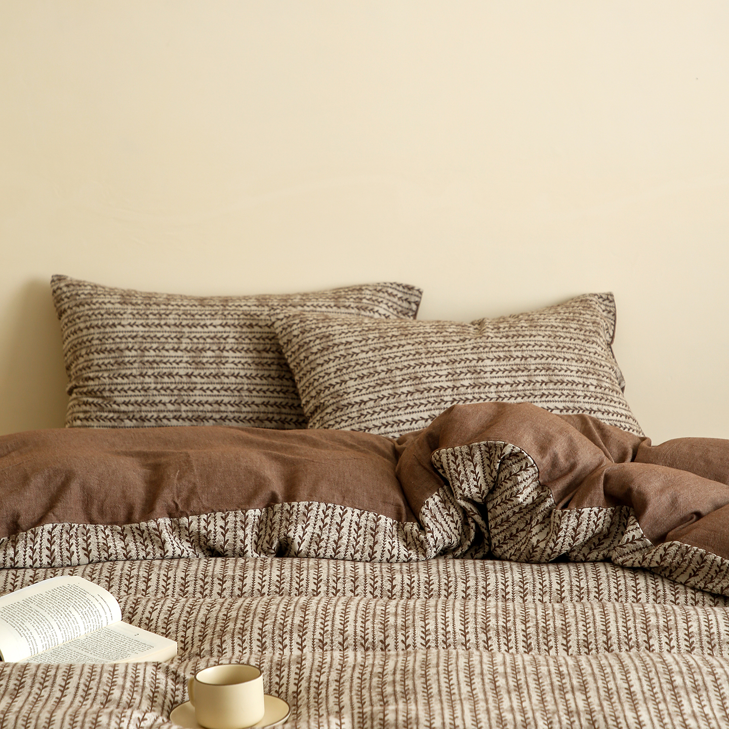 沐白家居 2025新款色织全棉提花四件套 苏黎玫瑰-浅驼