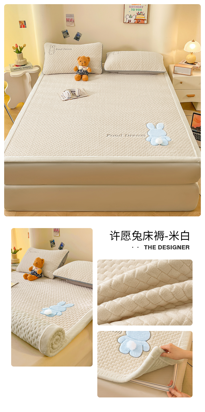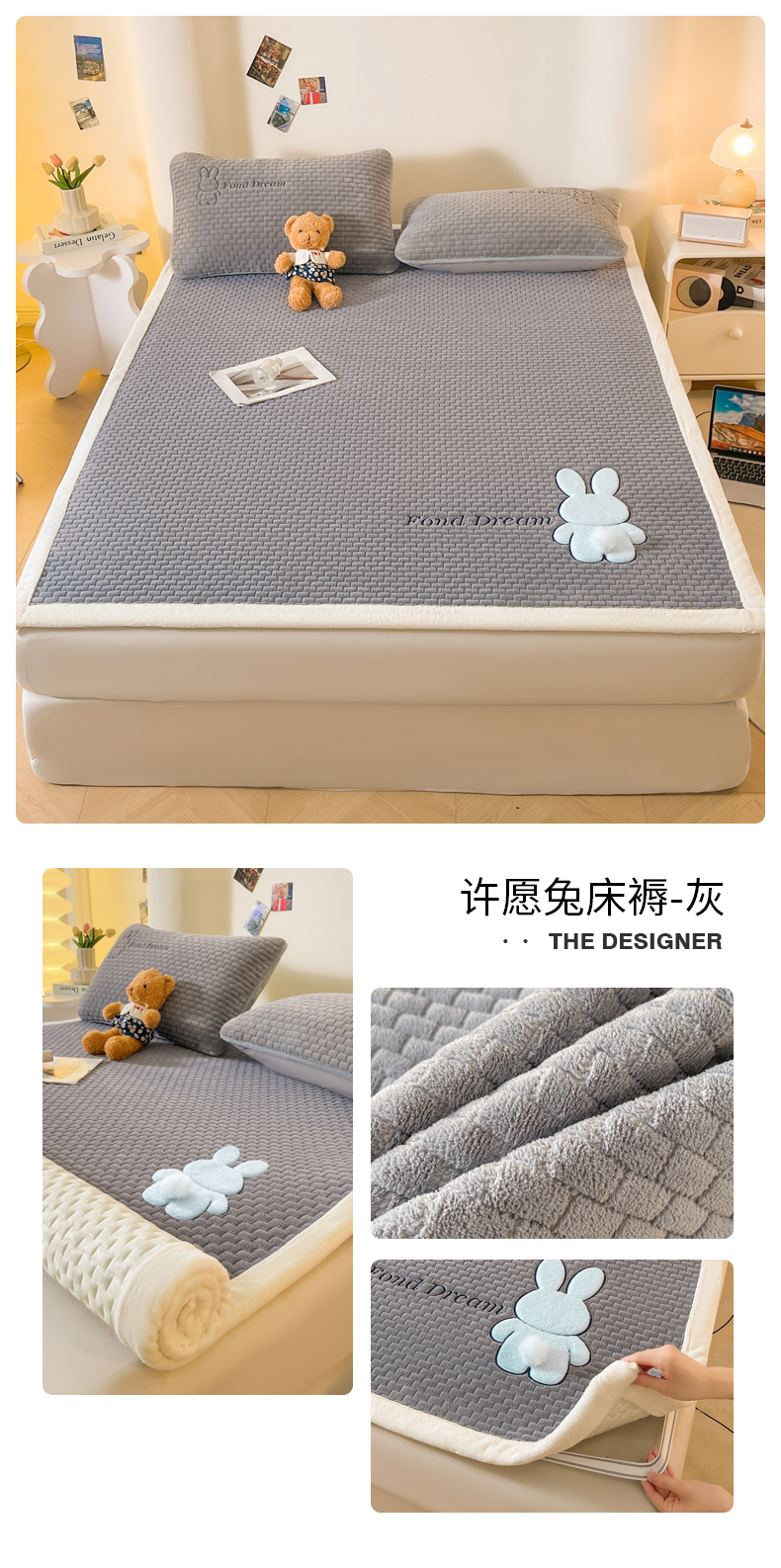 (总)爱思凯家纺 2025新款新棉绒床褥-许愿兔(学生款),许愿兔床褥-米白,许愿兔床褥-粉,许愿兔床褥-灰,许愿兔床褥-蓝,许愿兔床褥-绿,许愿兔床褥-香槟