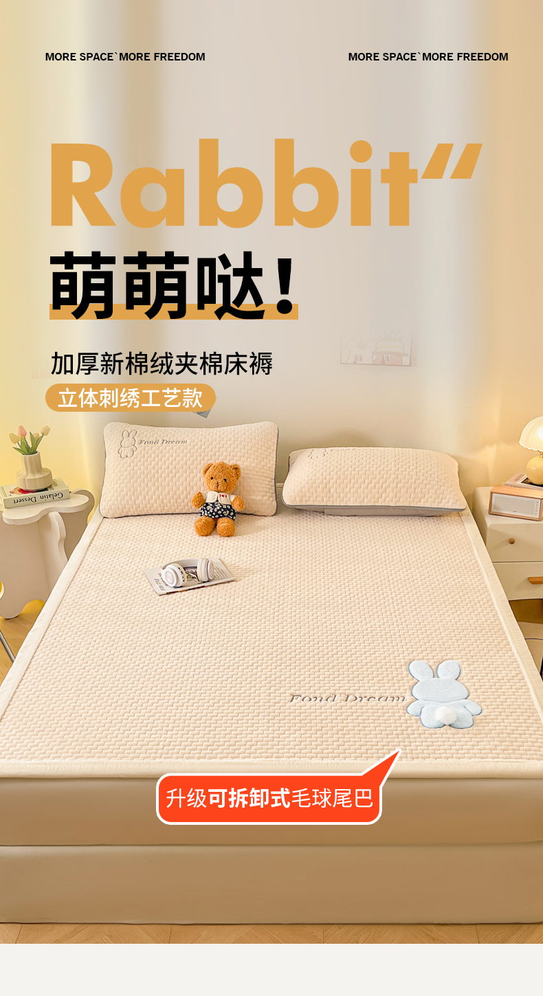 (总)爱思凯家纺 2025新款新棉绒床褥-许愿兔(成人款)