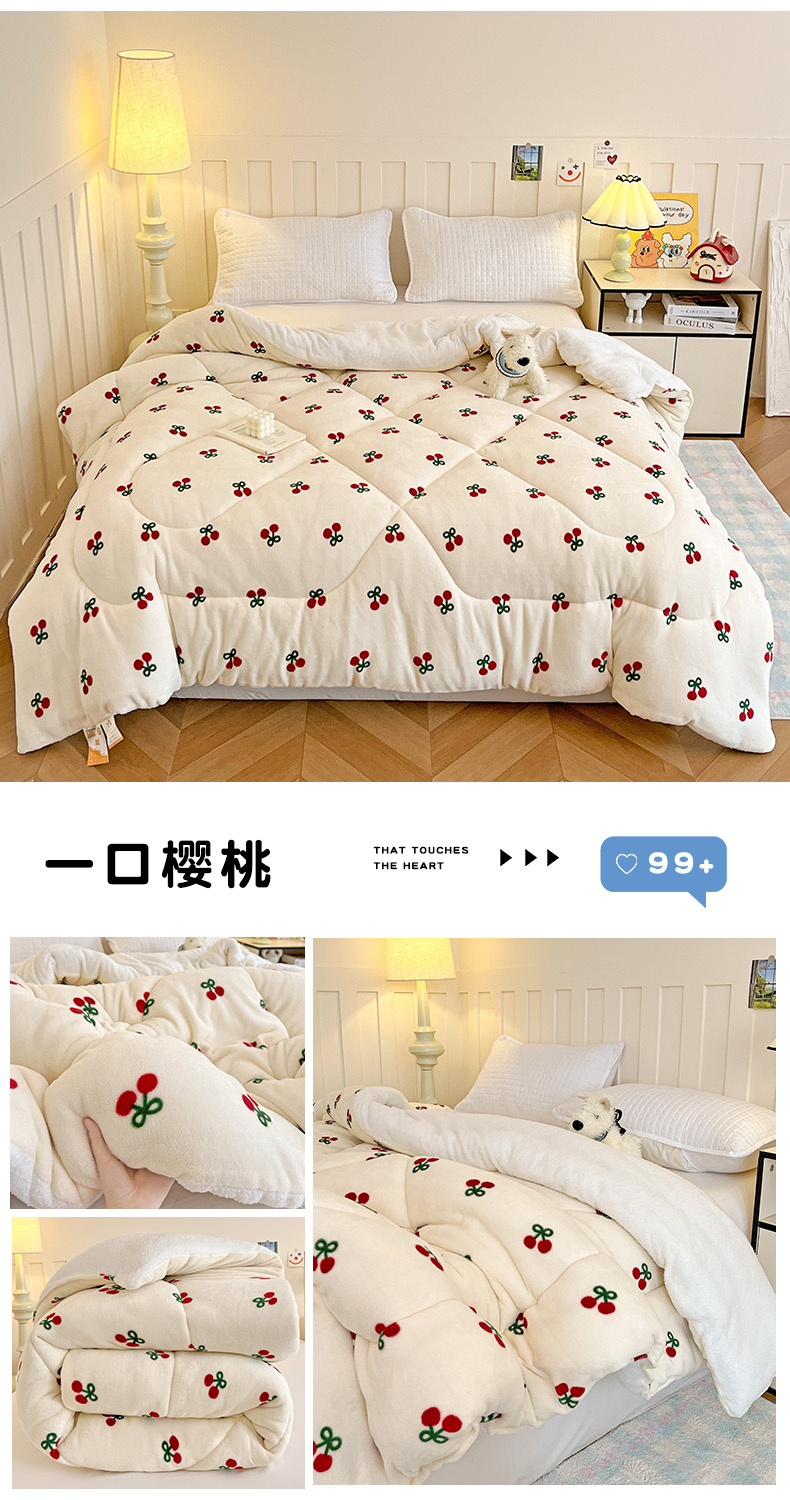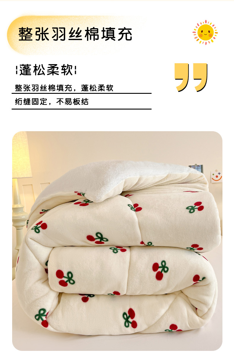 铺尚美家纺 2025新款牛奶绒羊羔绒印花清新款冬被子被芯 草莓牛奶