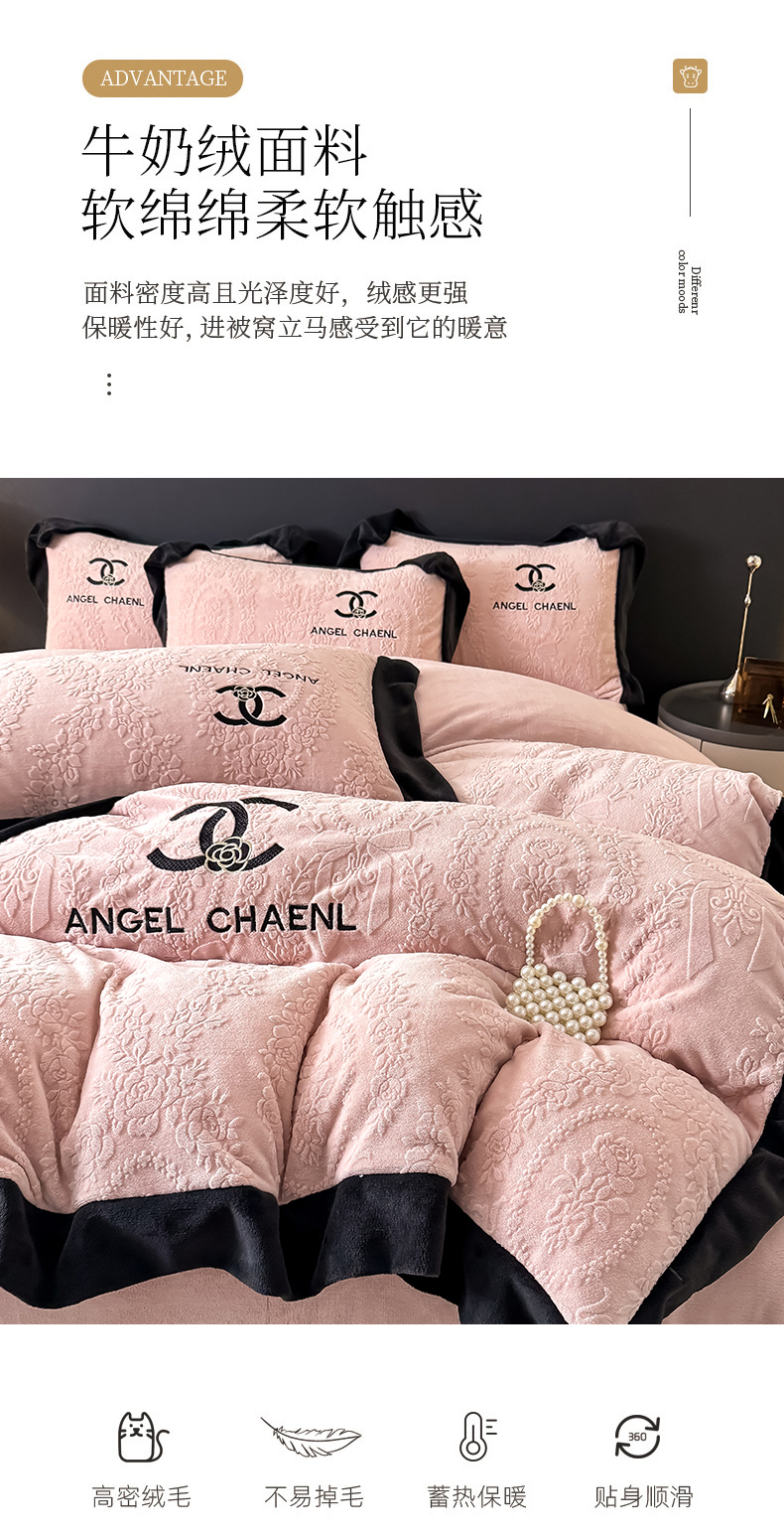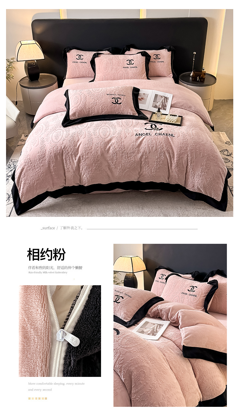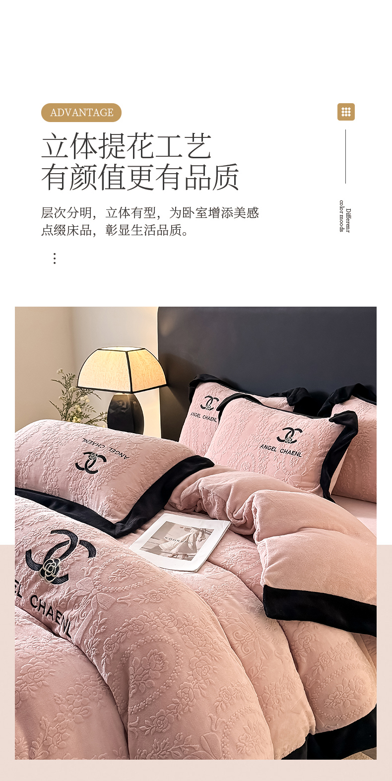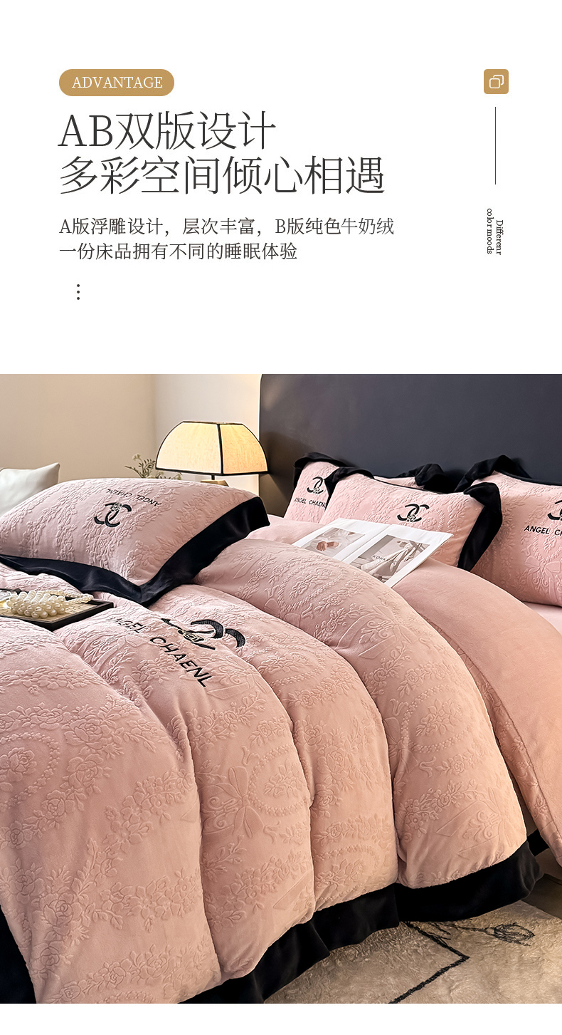 KA家纺 2025冬季高克重绣花雕花牛奶绒四件套 相约粉
