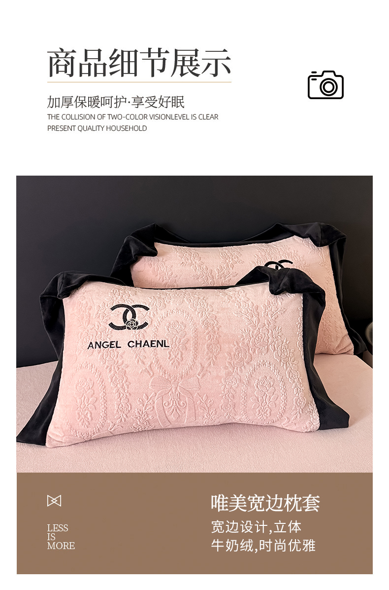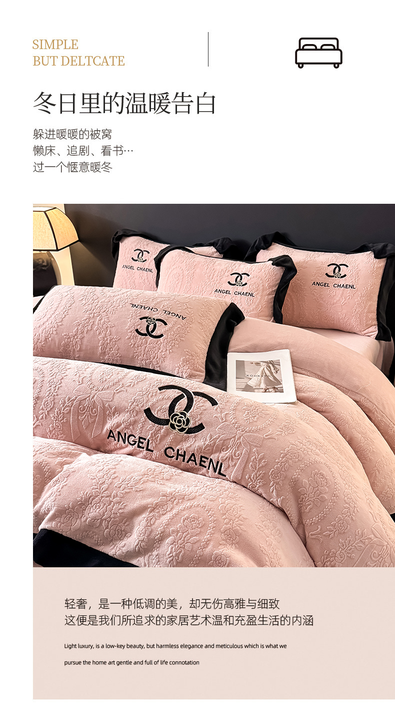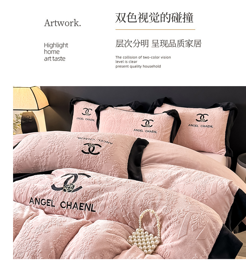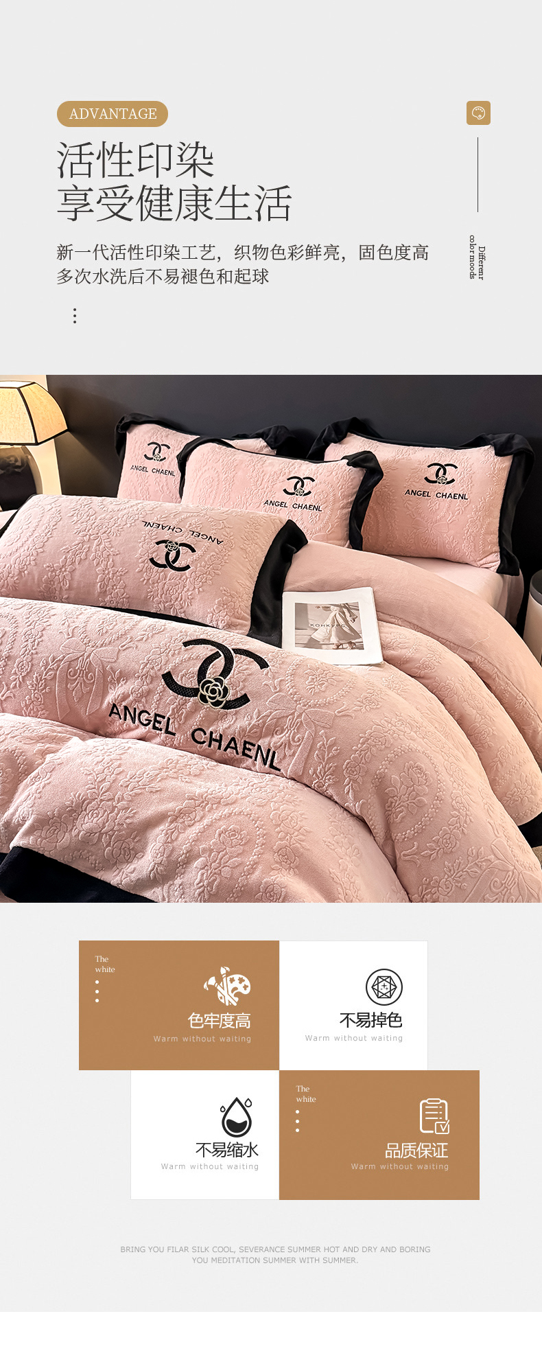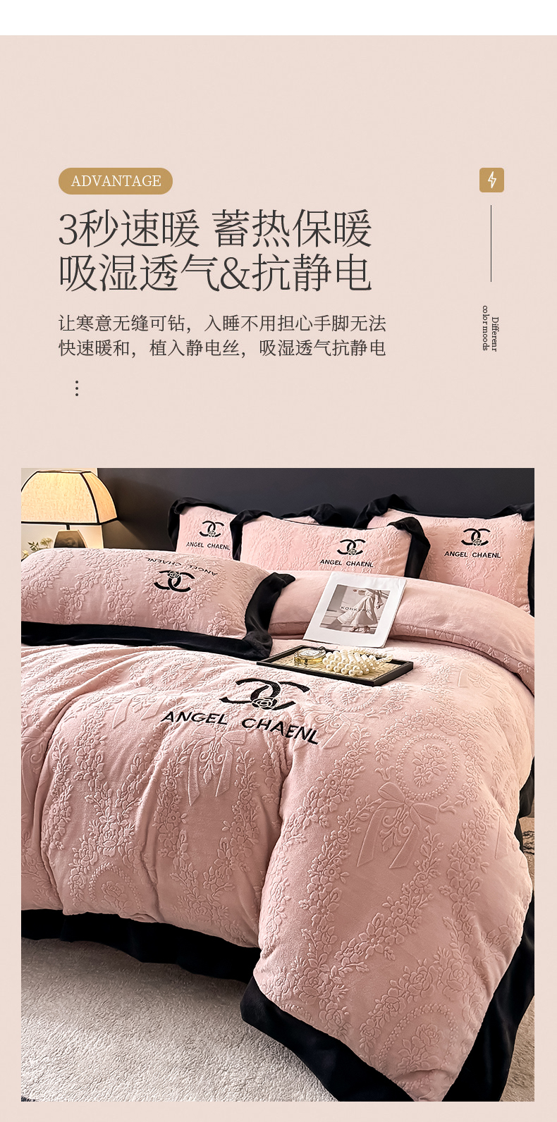KA家纺 2025冬季高克重绣花雕花牛奶绒四件套 相约粉