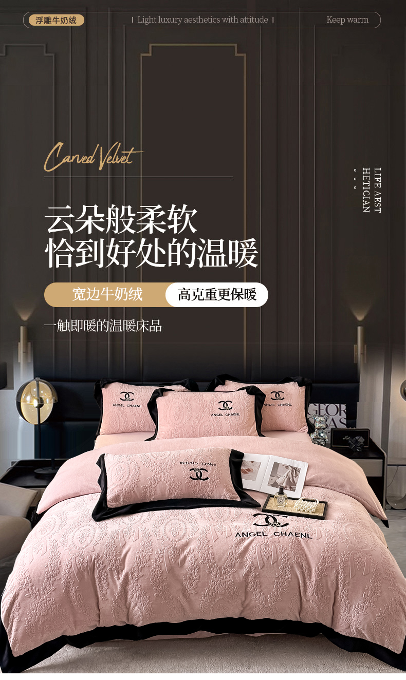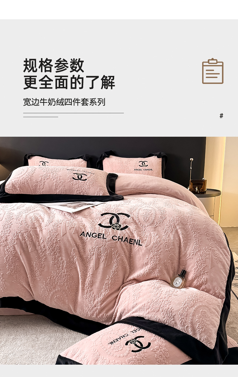 (总)KA家纺 2025新款秋冬兔毛边工艺款兔毛牛奶绒四件套,豹闪闪,蝶飞飞,红彤彤,花满满,洛可可,情浓浓,心乱乱
