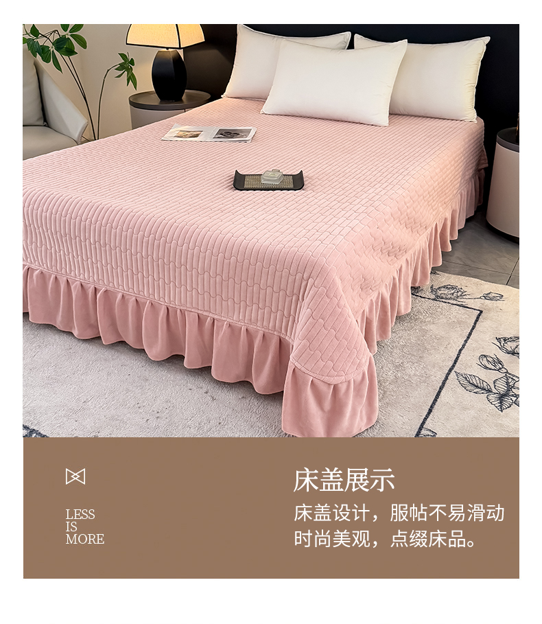 (总)KA家纺 2025新款冬双层蕾丝花边雕花牛奶绒床裙款四件套,郁郁葱葱,紫气东来,粉色回忆