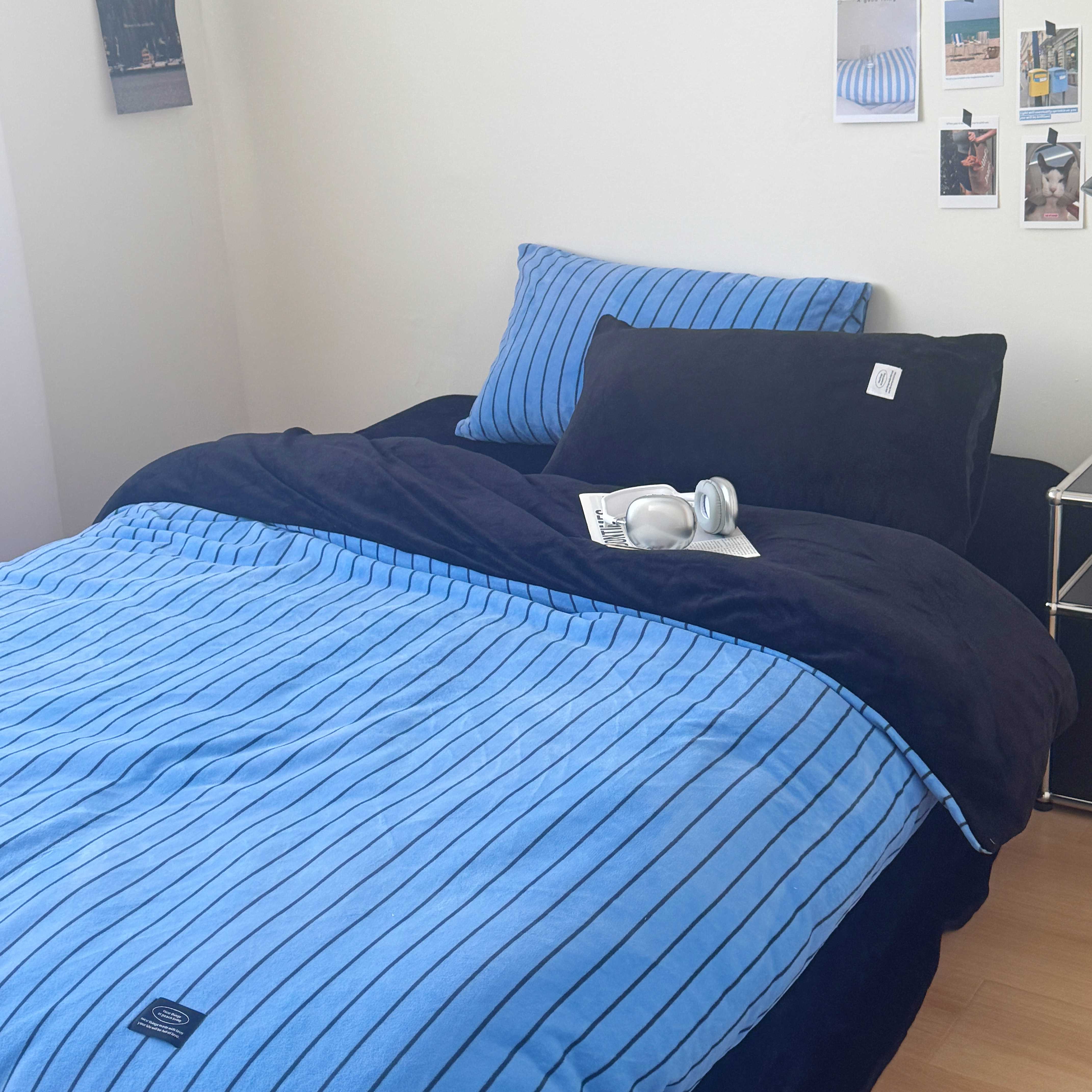 商品名称:桃喜 2025新款条纹牛奶绒系列四件套(会员-5) 冰岛蓝
