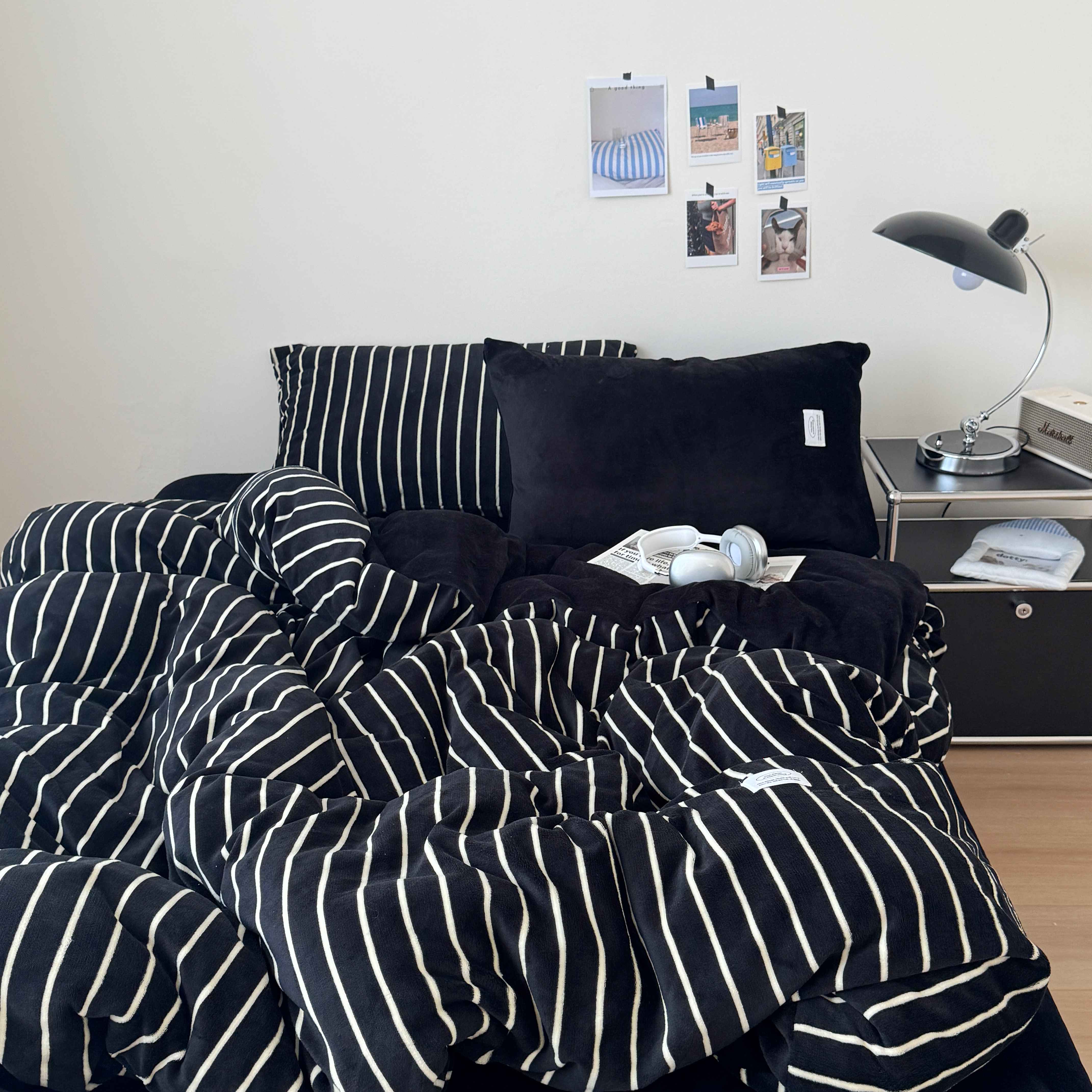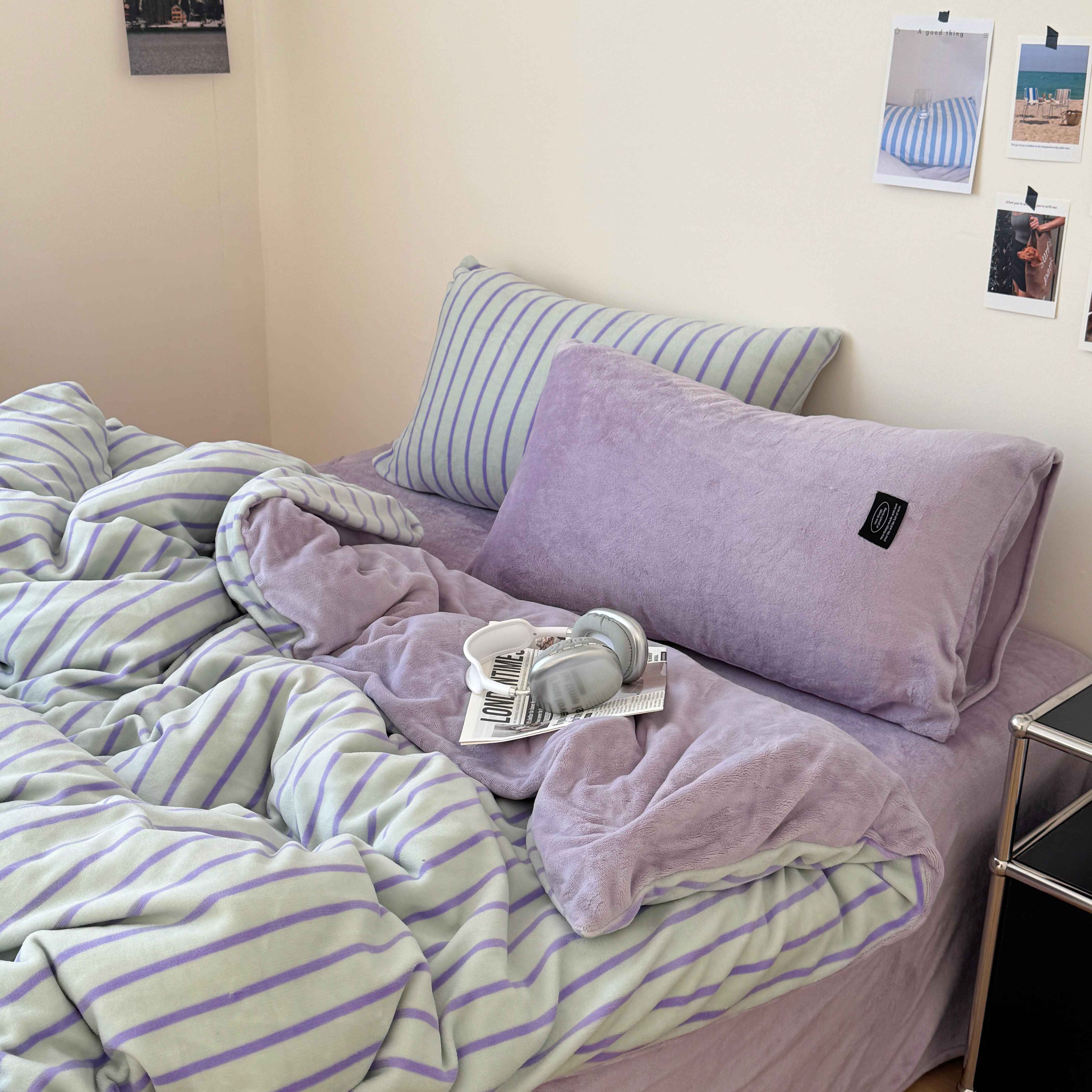 桃喜 2025新款条纹牛奶绒系列四件套(会员-5) 冰岛蓝