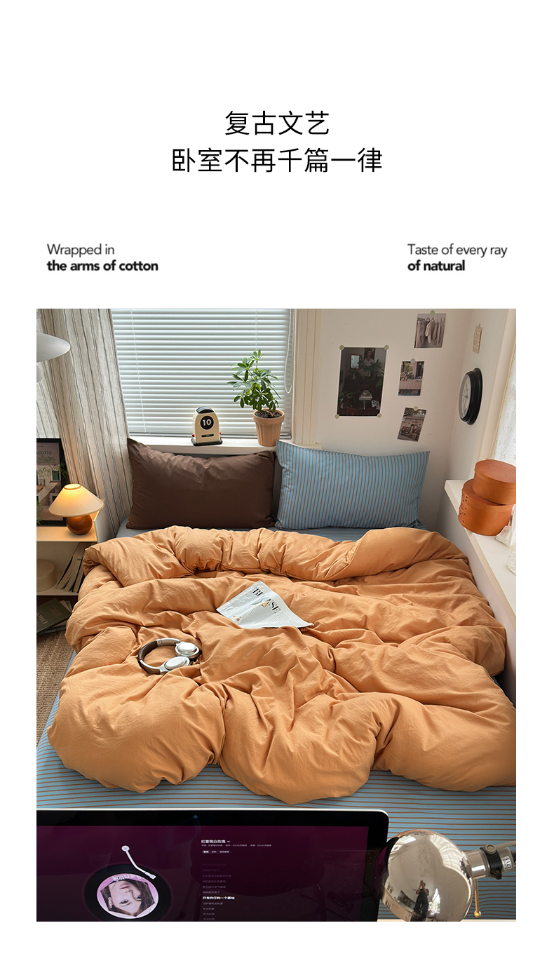 当前位置: 91家纺网 > 商品网购 > 床品套件 > 四件套 > 化纤普通四件套 > 尤米 2025新款中古风水洗棉四件套 橘子汽水