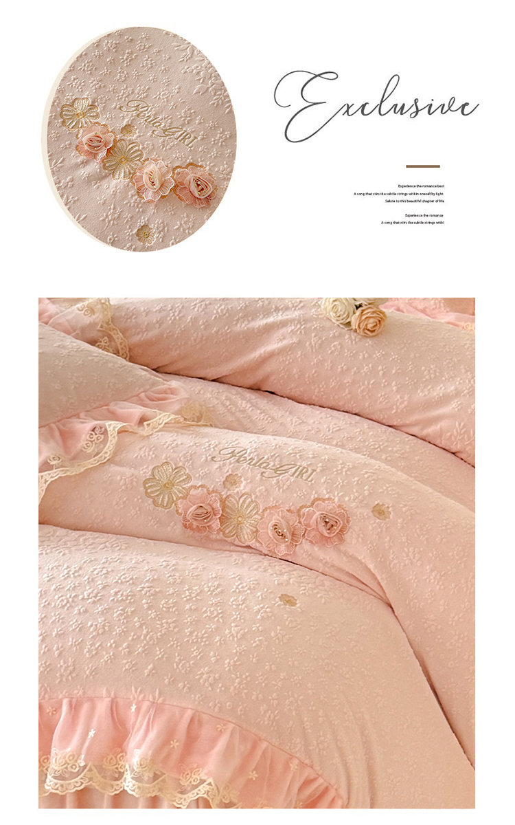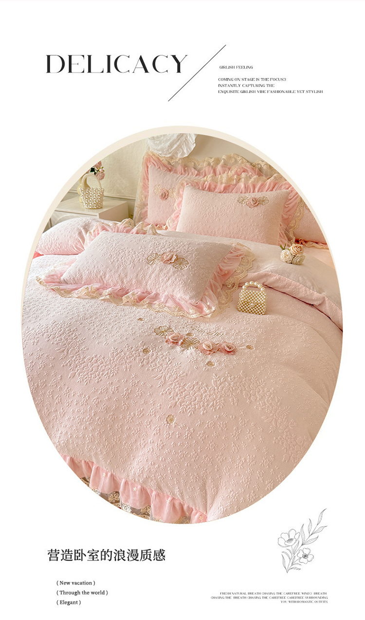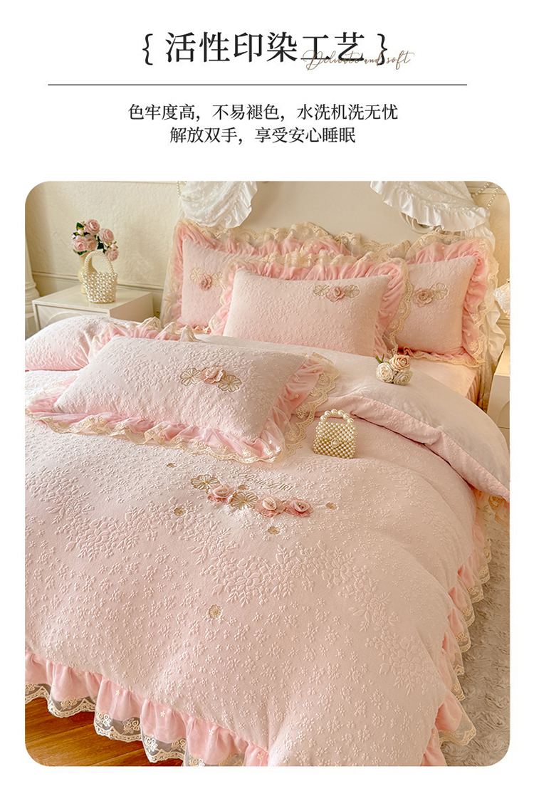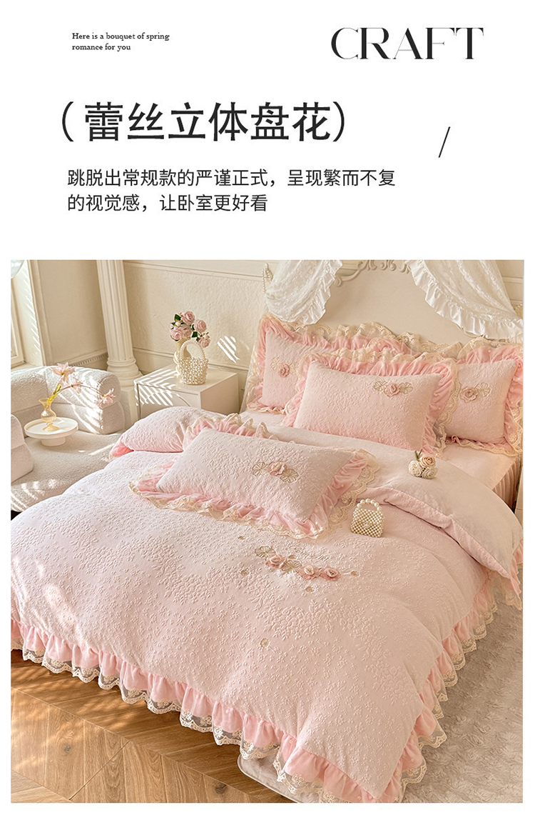 当前位置: 91家纺网 > 商品网购 > 床品套件 > 四件套 > 牛奶绒四件套 > 2025漫布云纺360g全消光牛奶绒工艺款蕾丝盘花立体雕花绒牛奶绒四件套刺绣绣花套件 温婉-珍珠粉