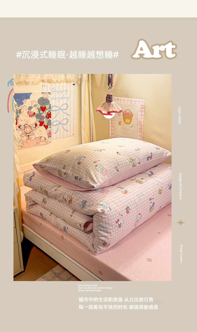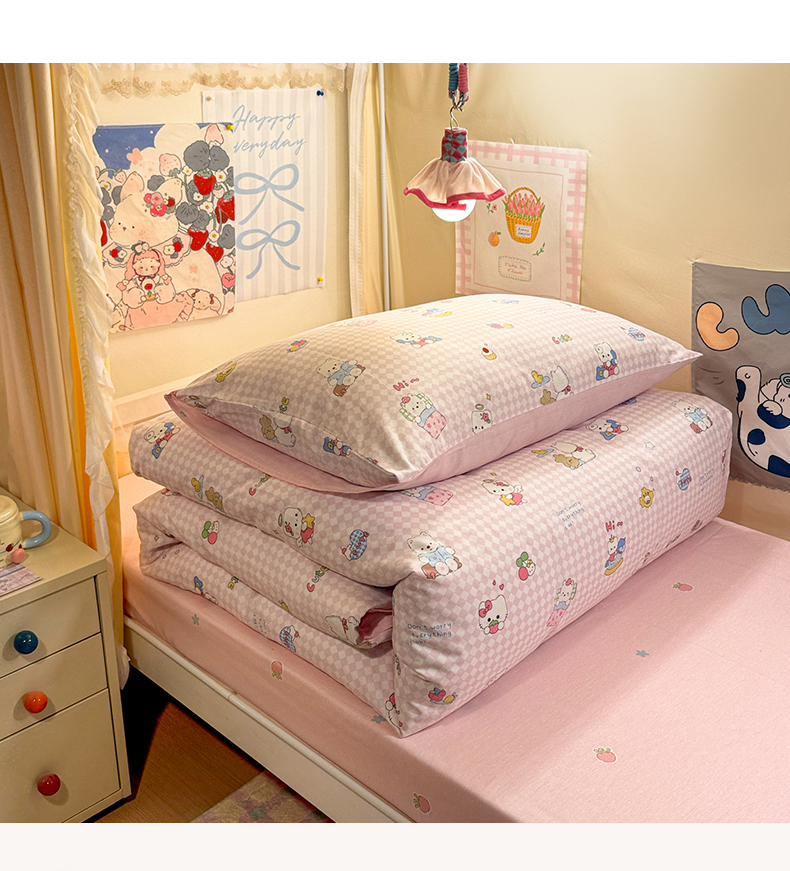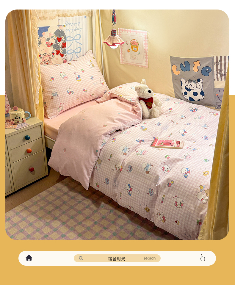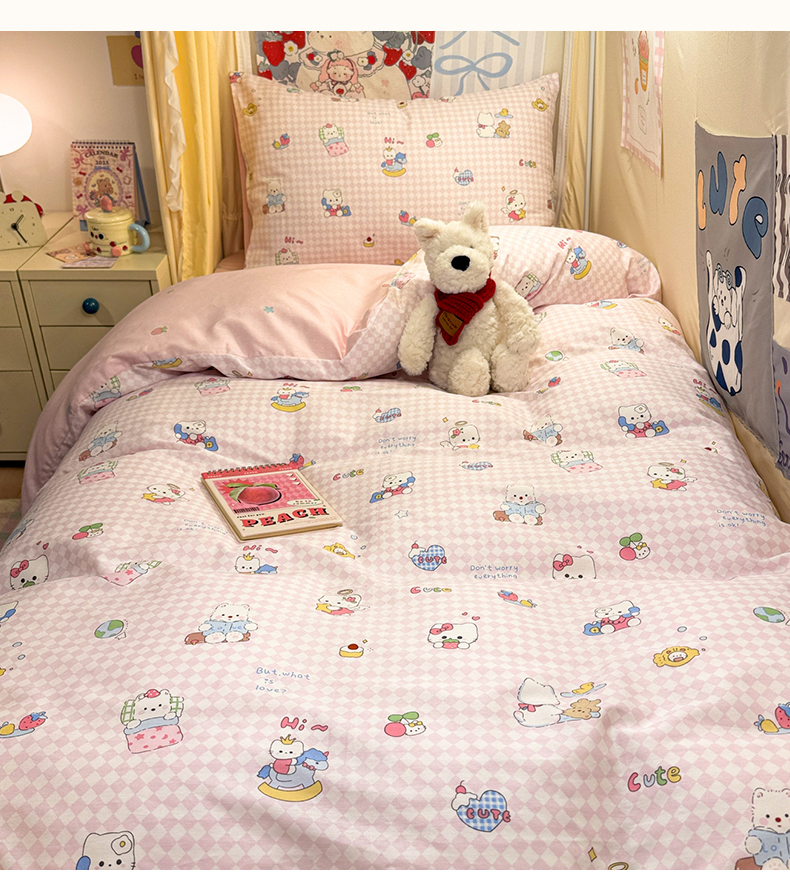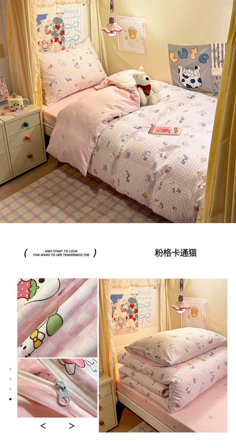 当前位置: 91家纺网 > 商品网购 > 床品套件 > 三件套 > 简宜家居(朝初家纺) 2025新款全棉12868斜纹卡通花卉学生三件套四件套 粉格卡通猫