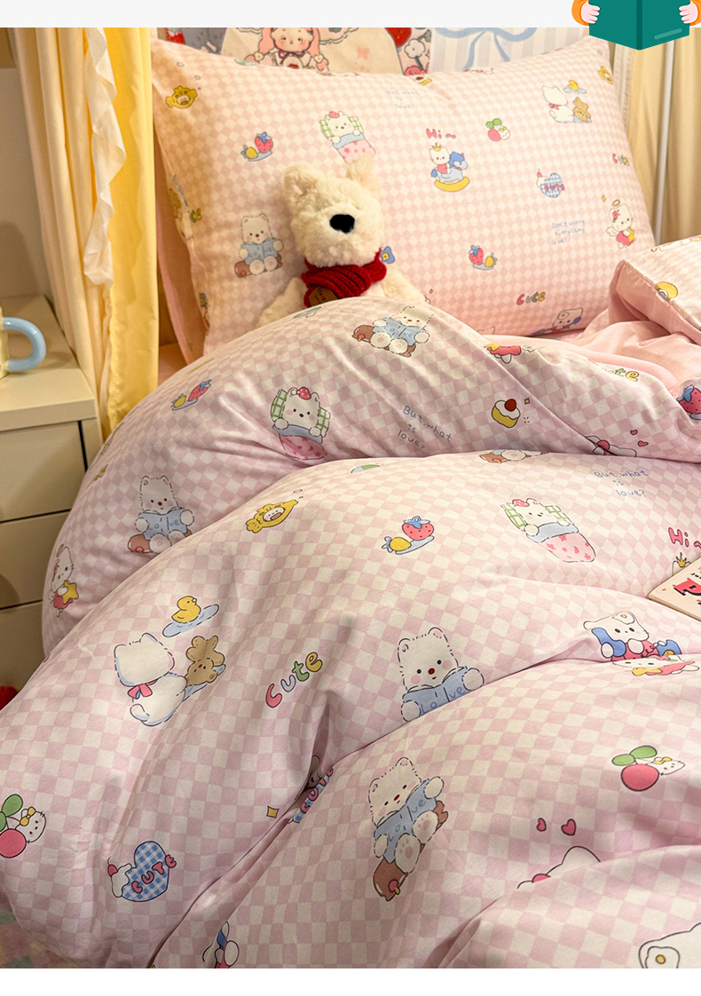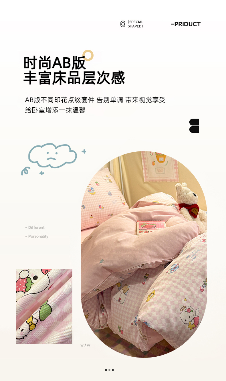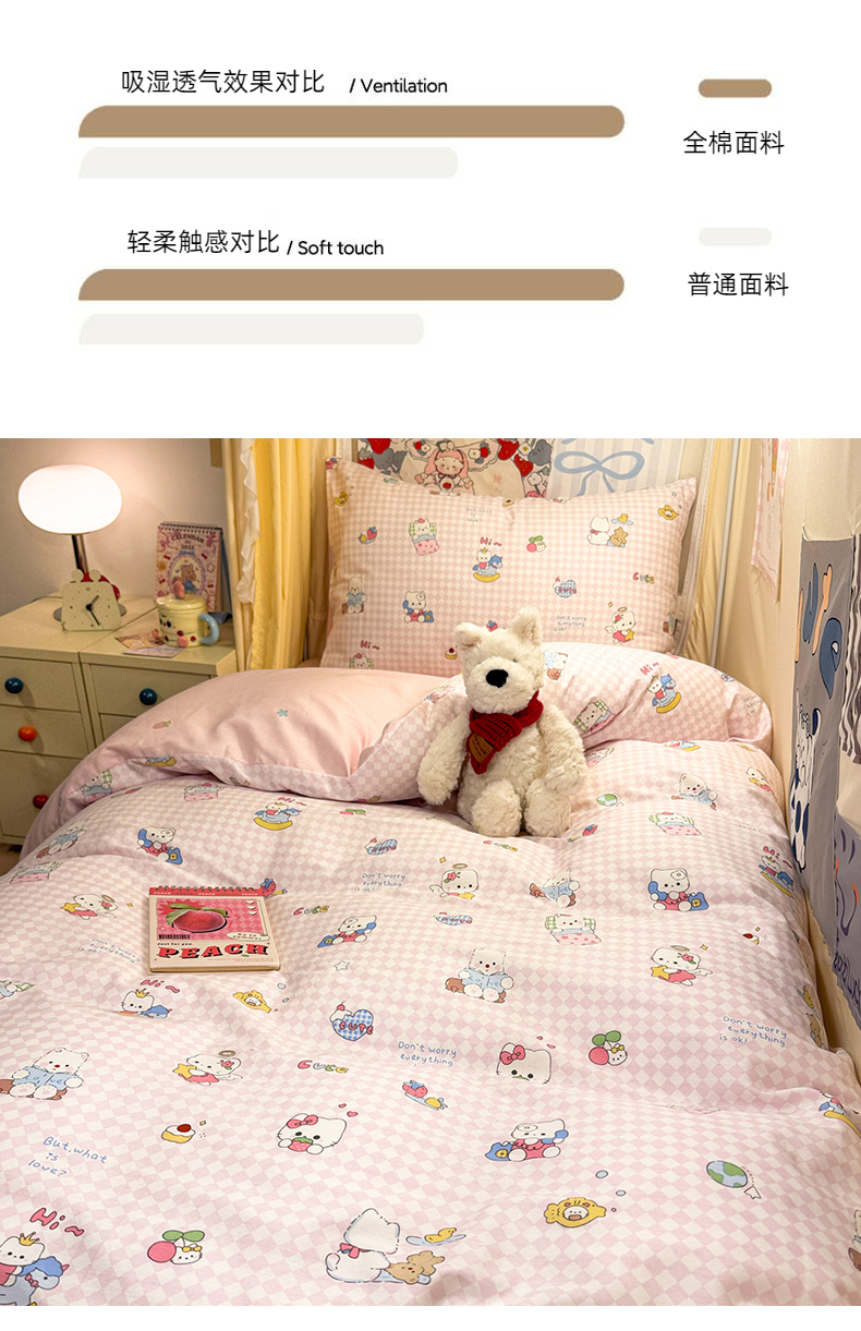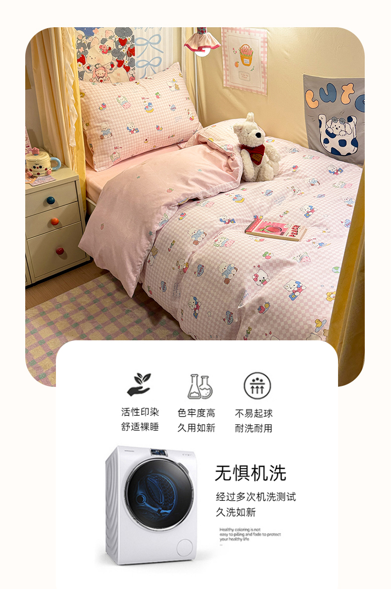 当前位置: 91家纺网 > 商品网购 > 床品套件 > 三件套 > 简宜家居(朝初家纺) 2025新款全棉12868斜纹卡通花卉学生三件套四件套 粉格卡通猫