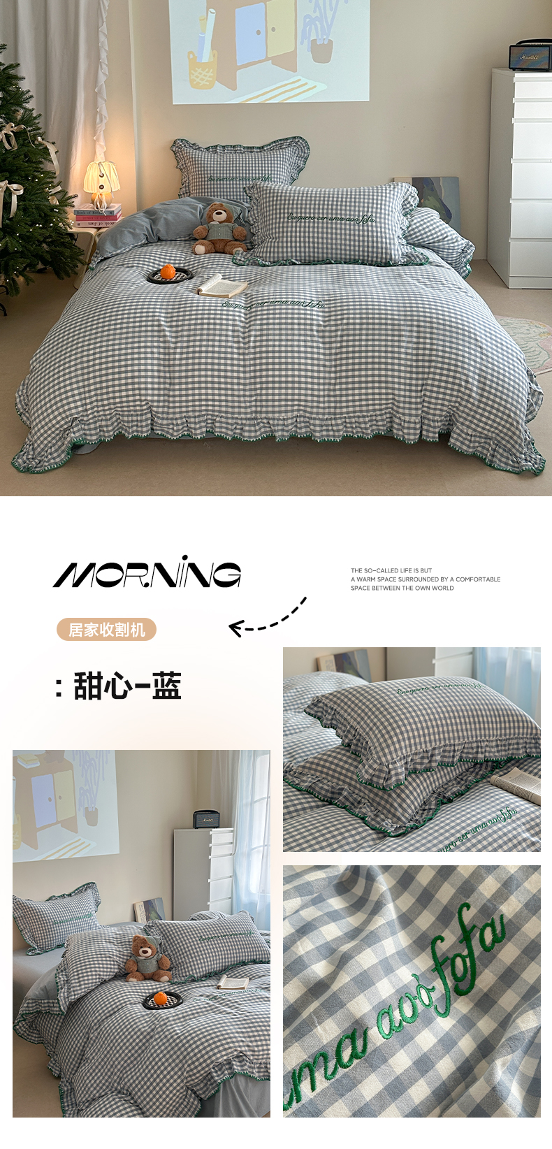 (总)笔墨家居 奶油系公主风撞色40支纯棉水洗棉四件套实拍,小苍兰,莫兰迪,青烟蓝,秋香桔,云朵白