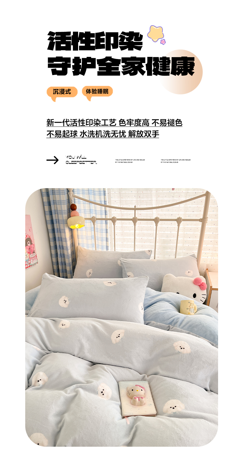 当前位置: 91家纺网 > 商品网购 > 床品套件 > 四件套 > 牛奶绒四件套 > 梦洋家纺 2025新款软fufu加厚保暖可爱系牛奶绒宿舍床套件系列 抹茶绿狗