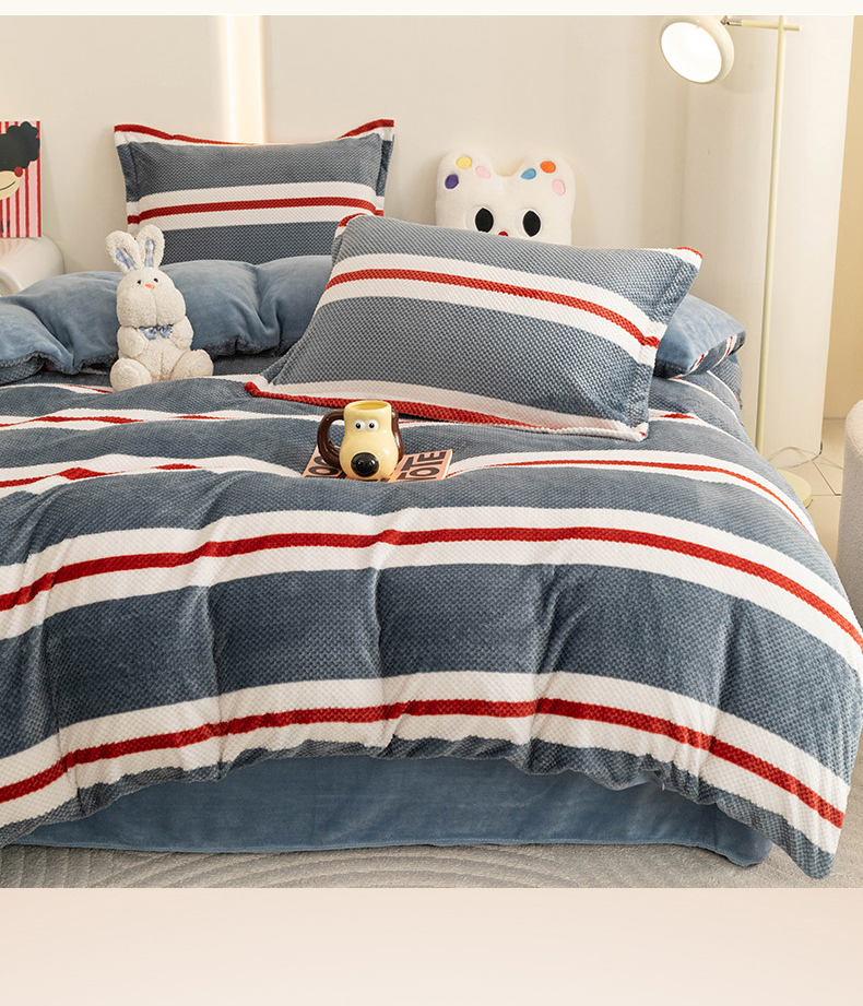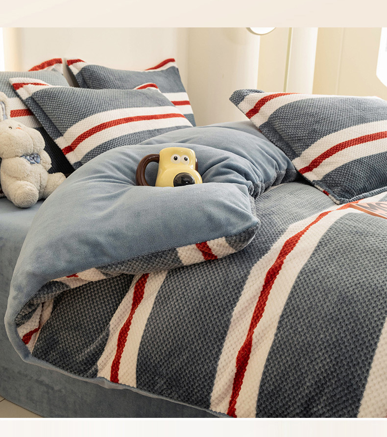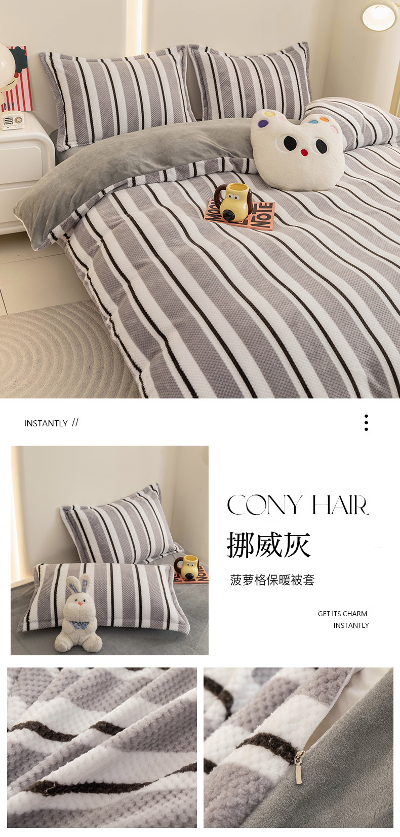 商品名称:倾慕家纺 2026新款立体菠萝格印花保暖单被套 英伦横条